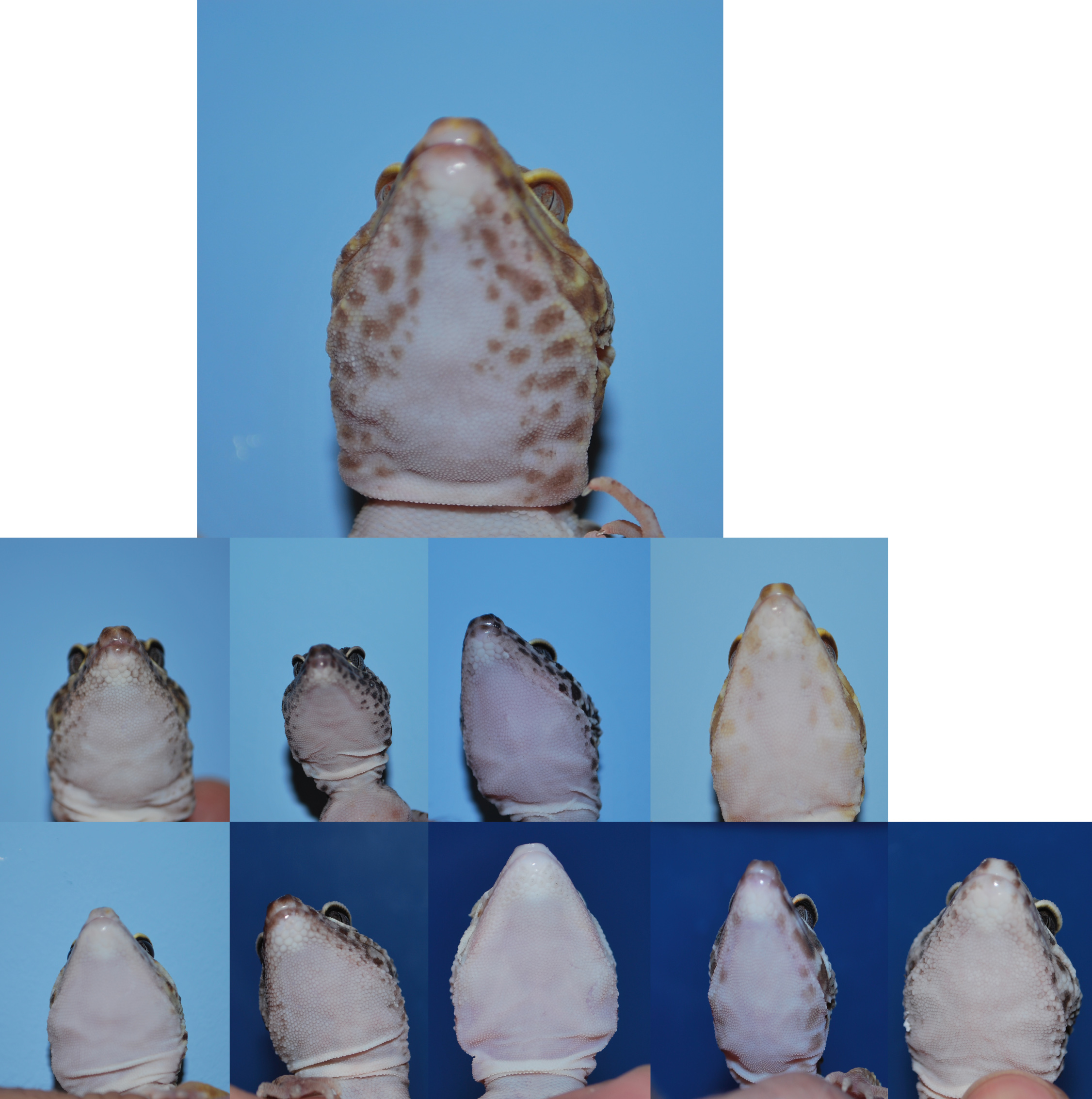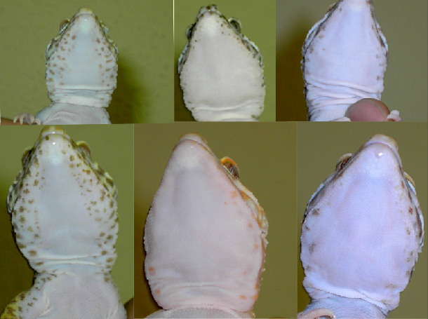 Buenas quería pediros un poco de ayudo para identificar a mi gecko leopardo, el problema es que lo compre en hamm hace 5 o 6 años cuando no existía tanta moda de fases ni había tantos nombres, lo compre como albino y lo que más me sorprende son las manchas que tiene debajo de la cabeza, la mayoría de las fotos de fases son vistas desde arriba y no se ven estas cosas , vuestros albinos también tienen estas manchas? espero que en la foto se vea claro, si no subiré solo una de esa zona…