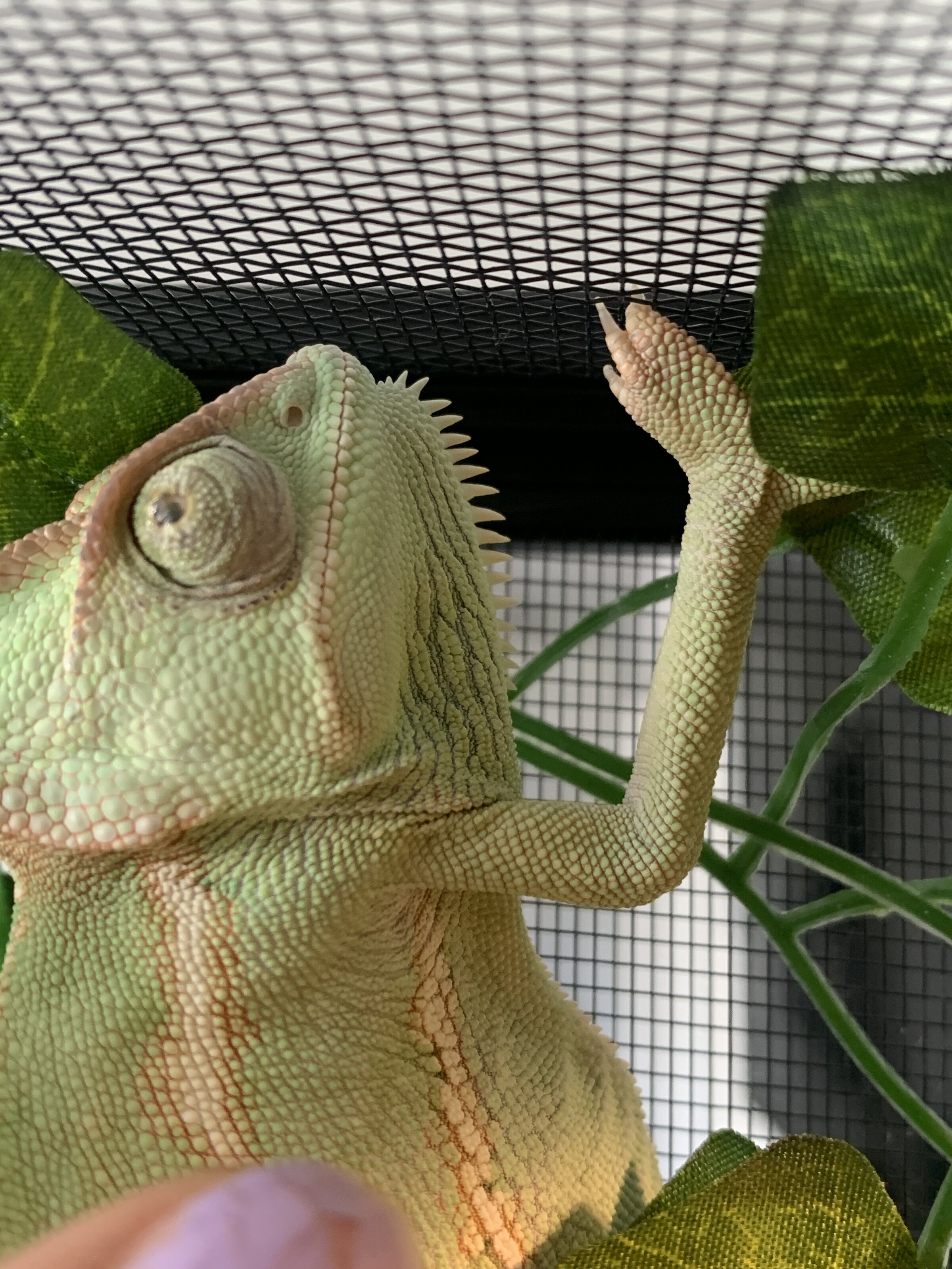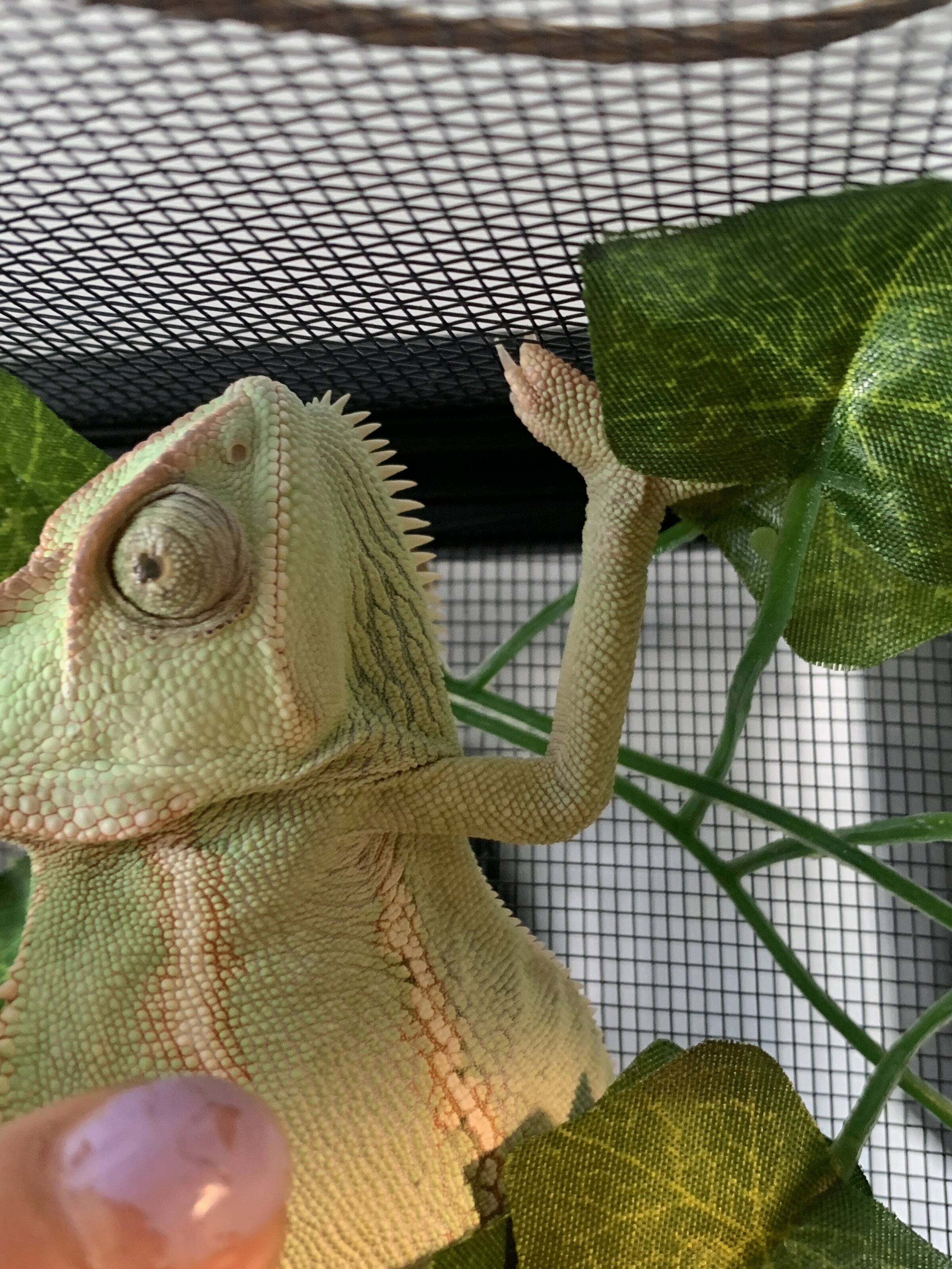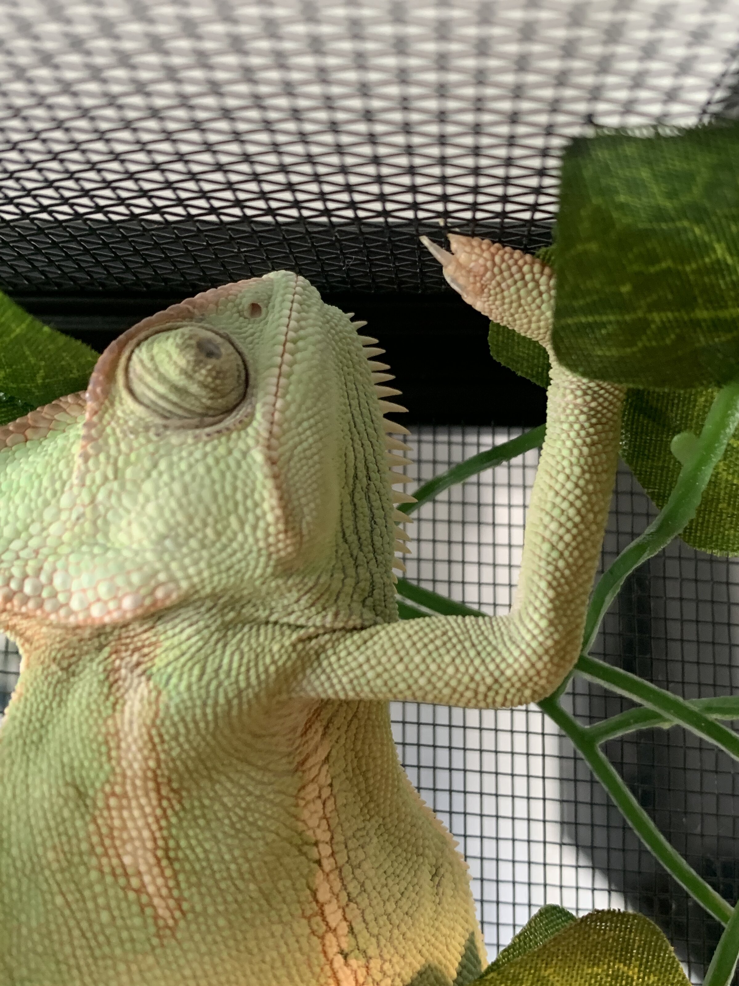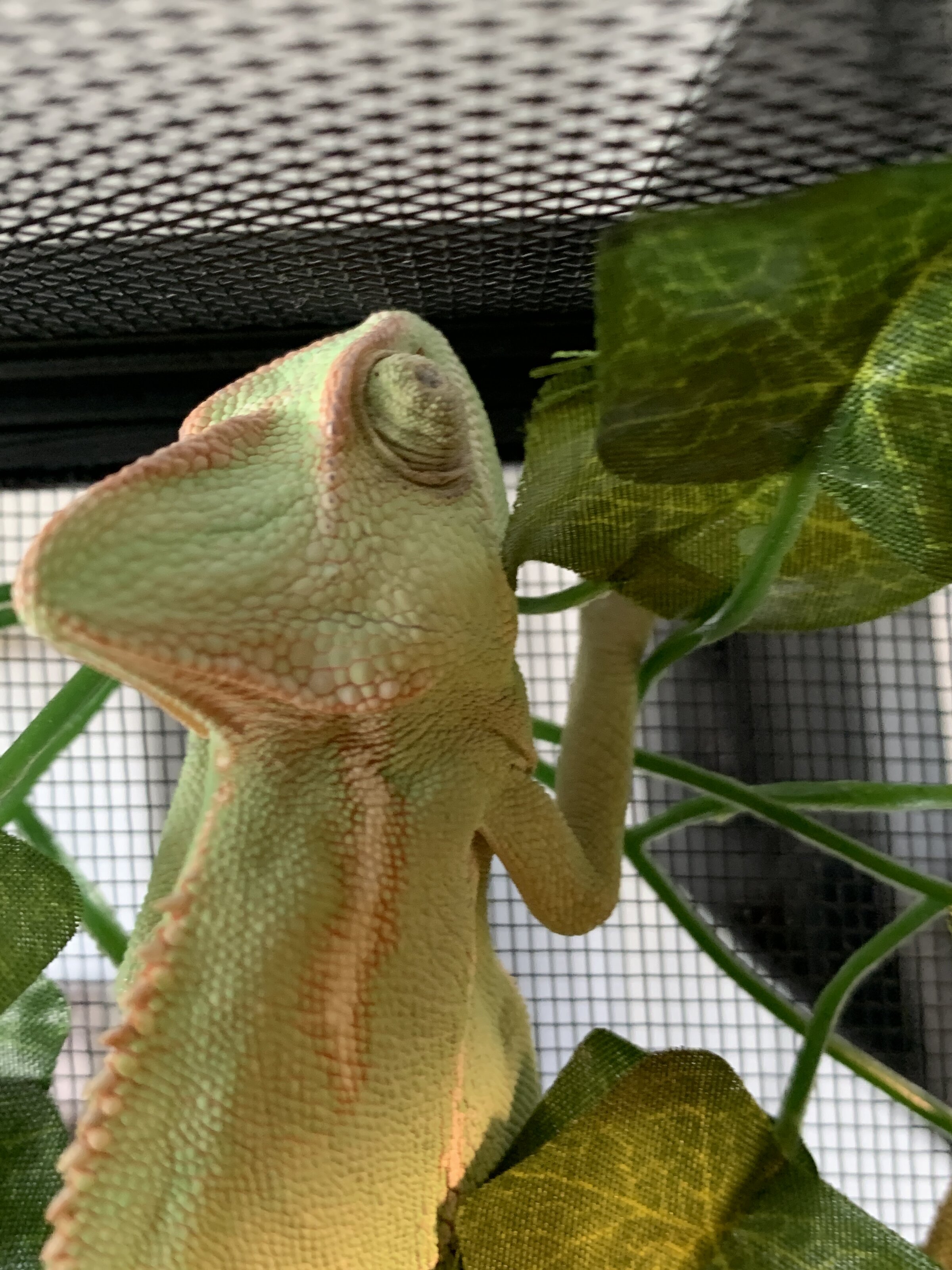 Hola a todos, tengo pocos meses con mi camaleón y jamás había tenido reptiles. Tiene 4 días aprox que se le empezó a poner el ojo como gris y también dejo de comer. Simpre a sido muy activo y ah tenido buen color entonces no se que le esté pasando, si alguien me podría ayudar se lo agradecería mucho. El otro ojo todo bien pero si estoy preparada!
