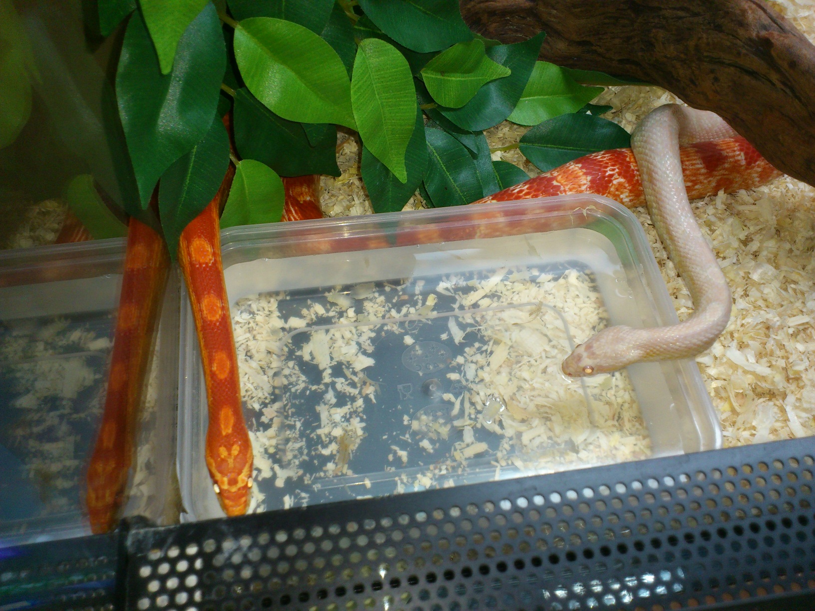 Hola muy buena chicos, tengo una pareja de guttatas, un ejemplar es Snow (creo que el macho) y el otro es Amelanistica roja (supongo que la hembra). Ahora tendrán el año de vida y hoy dia 5 de mayo las acabo de ver como están copulando, la snow es mucho más pequeña de tamaño que la Amel por lo que supongo que la hembra es la Amel (ahora colgaré fotos donde se vé claramente los emipenes dentro de la cloaca).