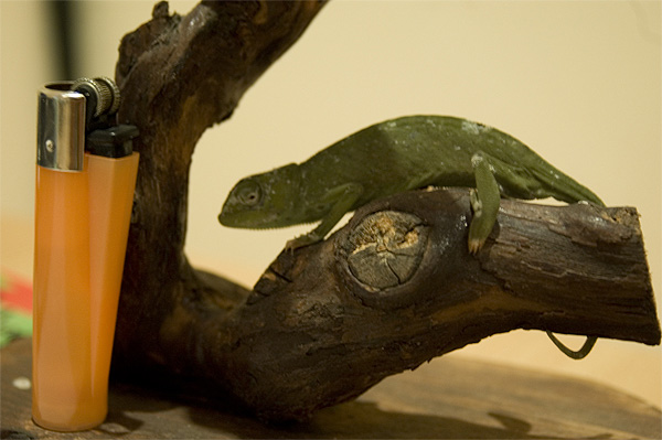 Me acaban de traer este bichillo a casa, no lo esperaba asi que le he improvisado una caja con un spot de 75w, tiene un tronco y ramas donde hay sombra.