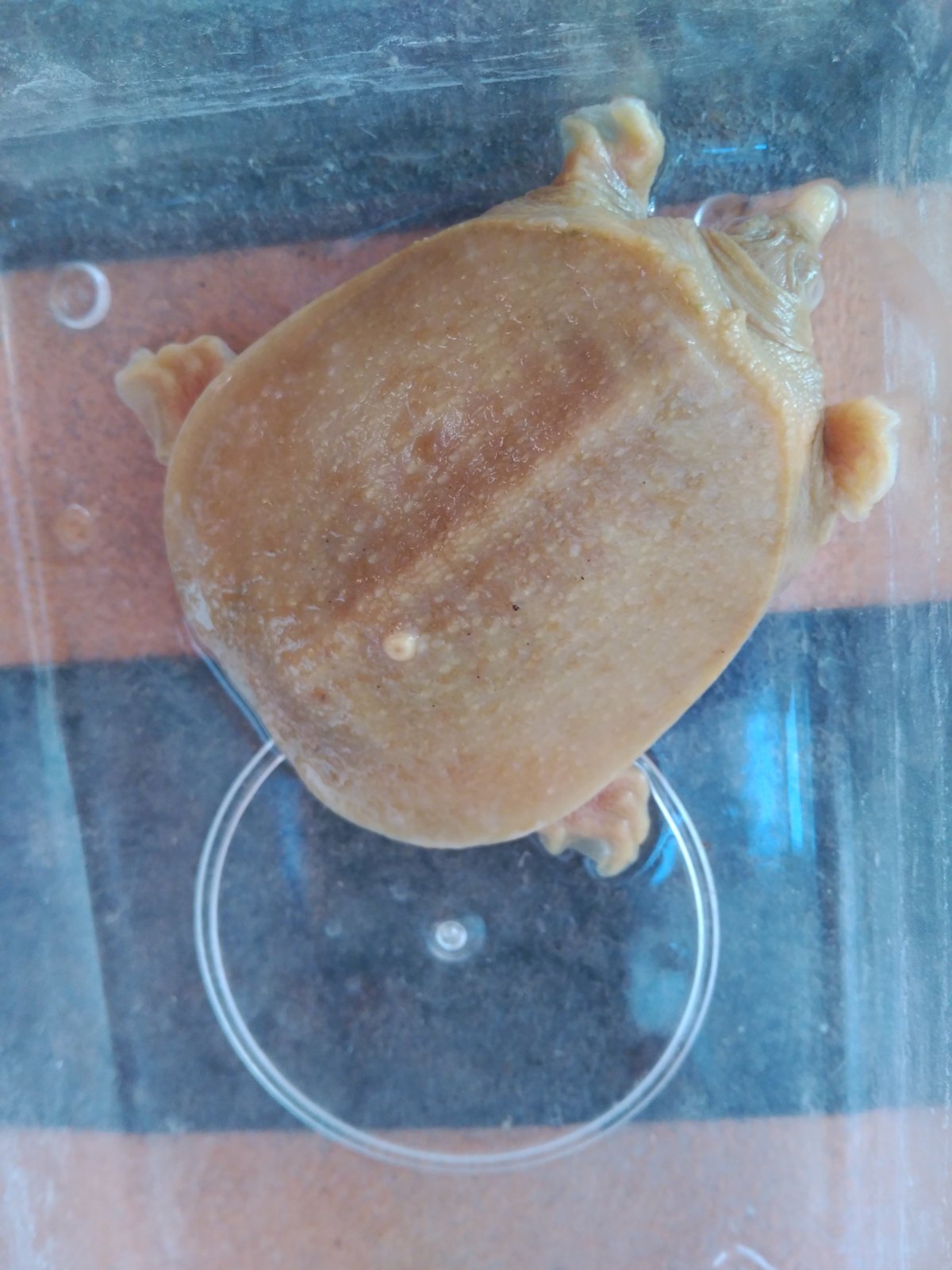 Hola a todos los amantes de los animales, os escribo porque compré una pelodiscus sinensis albina baby en la última edición de expoterraria de Madrid, y desde hace unos 3 dias noté en el caparazón un punto blanco, pero que parece que va en aumento, a ver si alguien me ayuda a identificar el problema, me preocupa porque es muy pequeña y espero que lo supere sin problemas con vuestra ayuda. Ayer le eché azul de metileno en el agua ya que hice un cambio de agua total, para ver si se trata del ich que ya me pasó con un goldfish y finalmente se le quitó.