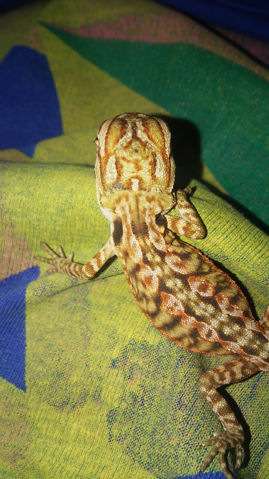 Buenas hace 4 dias adquiri una pogona, tiene como 3 semanas. En general esta muy bien come mucho, se pasa el.dia dando caña y ya es un cazador de moscas. Pero me di cuenta hace 2 dias de una mancha gris que le estava saliendo ala altura dela nuca. Le estoy dando baños pero el caso que al ser tan pequeña y yo ser un noob temo que le pueda pasar algo malo de verdad. Pongo una imagen con la mejor calidad posible