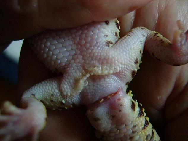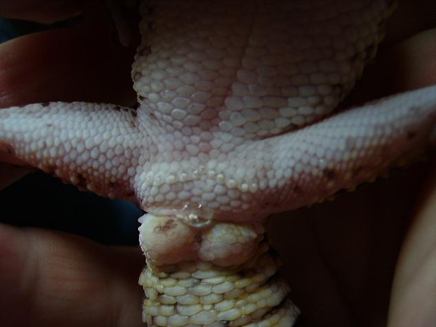 Esos dos "Bultos" que se ven Detras de la cloaca son los Hemipenes (Solo presentes en los machos), otro indicio del sexo son los poros femorales que como se puede ver en ambas fotos son esa linea de puntos que aparecen del otro lado de la cloaca, Tanto machos como hembras presentan estos poros pero estan Mucho mas marcados en los machos.