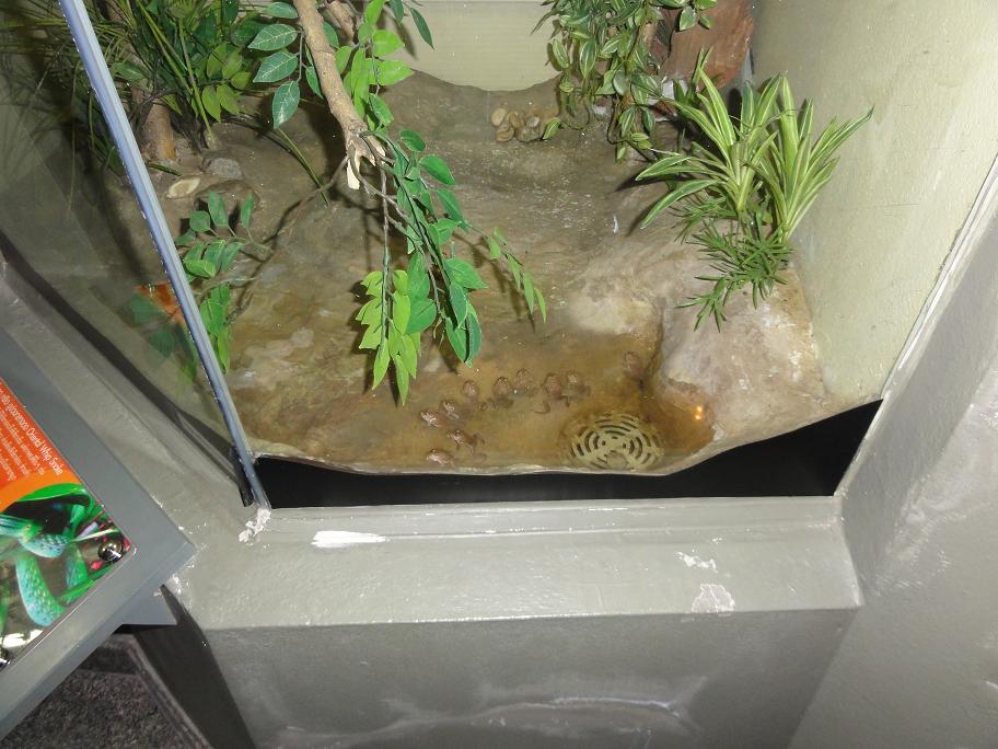 Lo unico que recuerdo es que la temeperatura del terrario estaba sobre los 28 grados y la humedad alrededor de 70 por ciento. En la parte de abajo del terrario esta y otras especies (prasina y frenata) tenian ranas (supuestamente la comida).