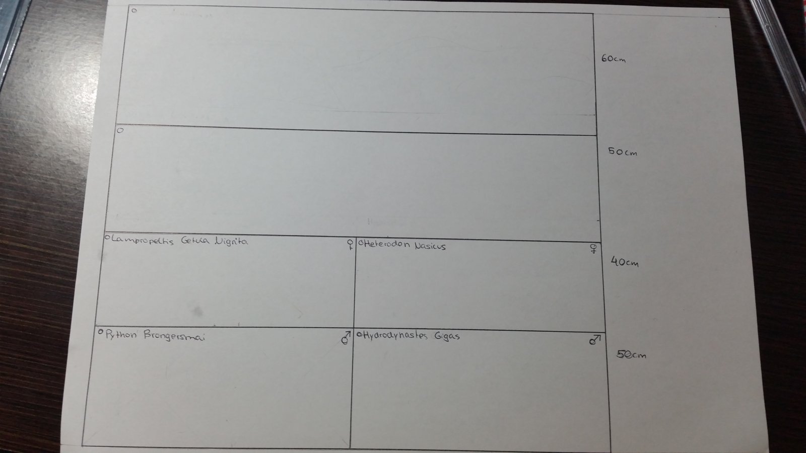 Hola tengo una nueva distribución veréis la cosa que es está , en los dos sitios de arriba tenéis alturas diferentes de dime en cual estaría mejor el varano acanthurus y la dracaena guianensis o si con 50 basta para los dos y en el caso de los varanos podría poner una pareja? Y en cuanto a las dracaenas seria mejor tener sólo uno o podría tener una pareja tambien