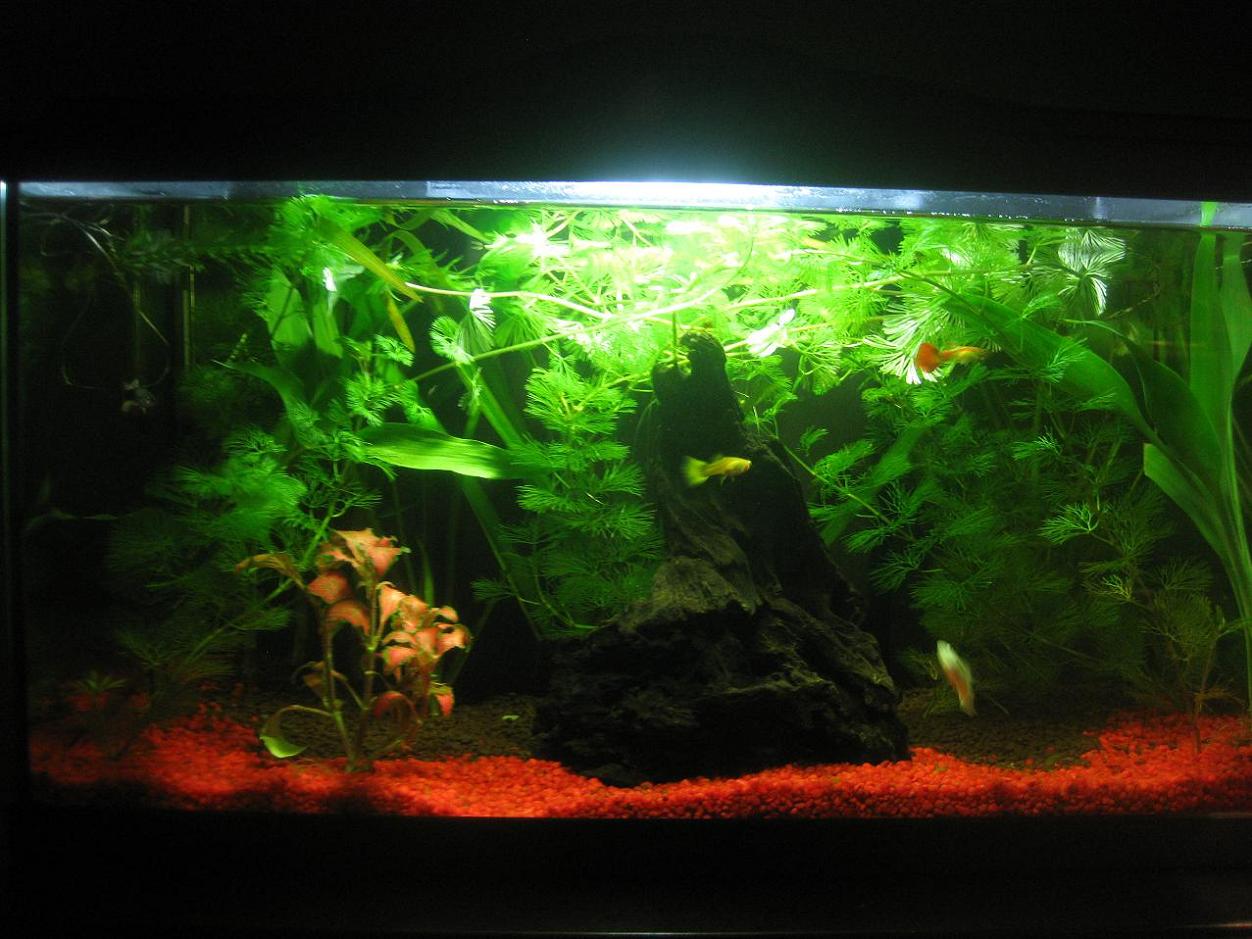 Las plantas que he podido encontrar de la lista son la Anubia nana, el musgo de java y la elodea densa, después también le he puesto un poco de salvinia y una microsorum pteropus, como sustrato le puesto arena de silice anaranjada. Intentaré subiros un par de fotos mañana, a ve que os parece ;)