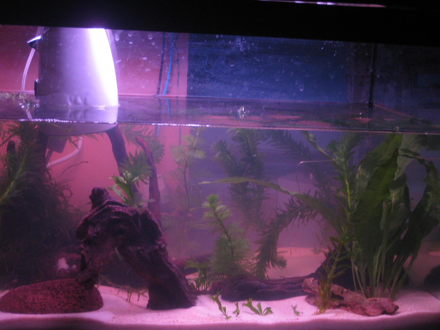 Por lo demas, yo aumentaria el volumen de agua, ya que cuanto mas agua tengas, mas facil mantener una buena calidad y estabilidad, no solo de parametros quimicos sino tambien temperatura. Aprovecha bien el volumen, que es una pena tener 60l y aprovechar solo 30....De hecho aunque los tritones te lleguen juveniles no deberias tener menos de 40l de agua, preferiblemente mas (siempre es preferible mas).