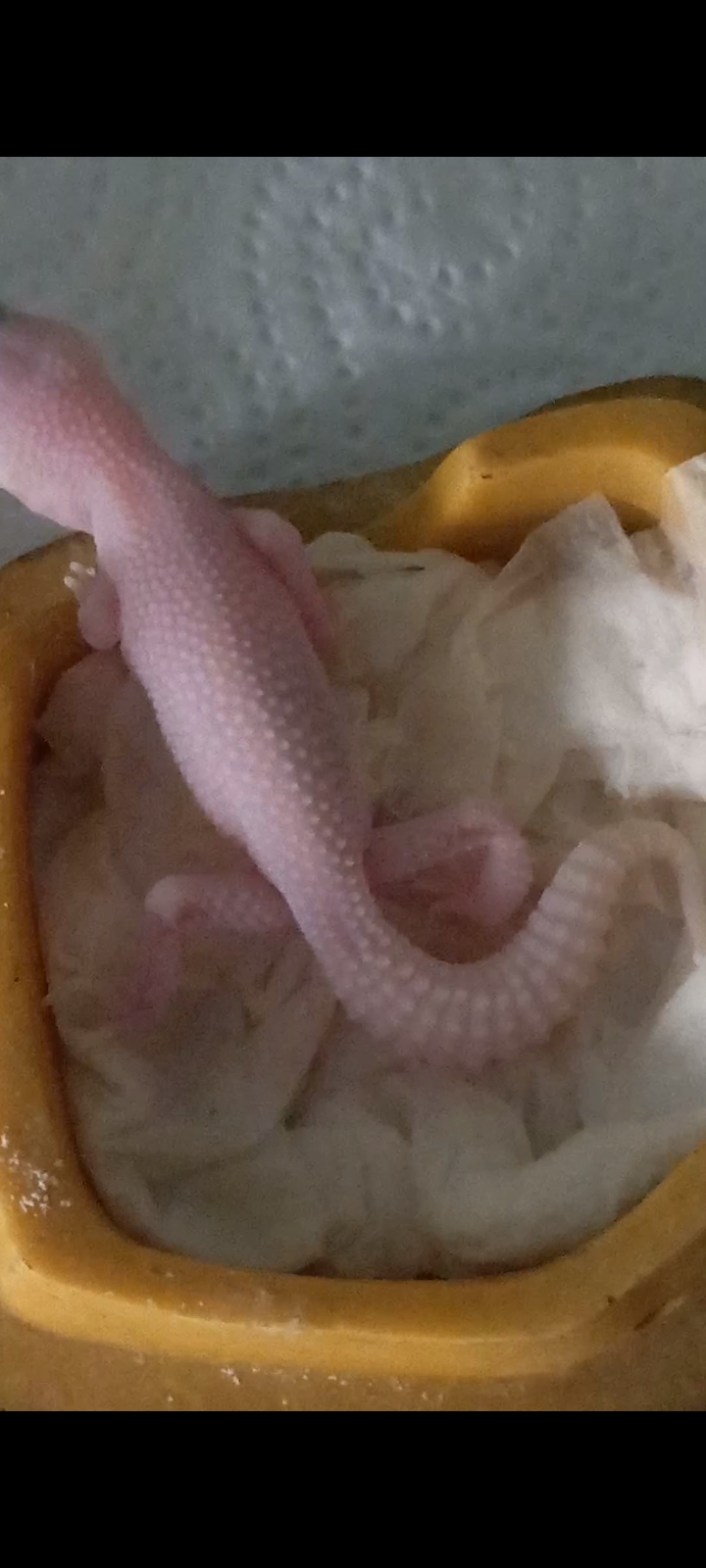 Sus parámetros son correctos , esta a 30 grados su zona caliente y la alimentación es perfecta , variada y con suplemento vitaminico y calcio d3 , es un mack snow diablo blanco , la pata la tiene doblada para dentro y no se sostiene (esa pata ,no el gecko , el gecko anda bien excepto por esa )