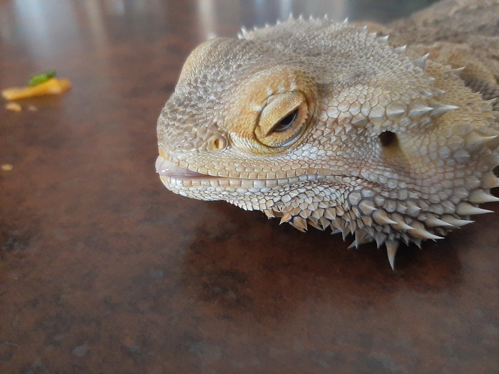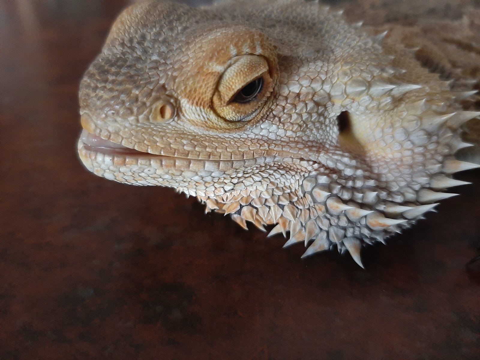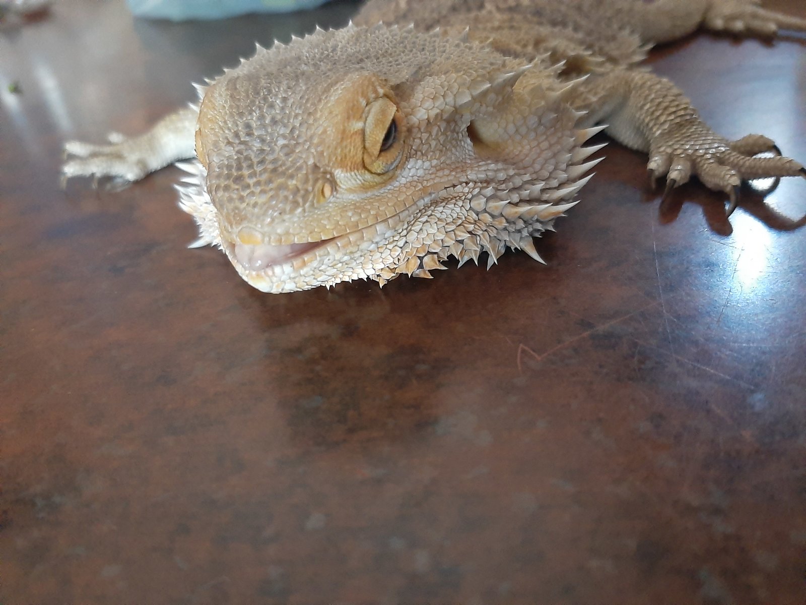 Hola! Necesito ayuda, mi pogona está todo el tiempo con su lengua afuera, en la punta de su lengua tiene un color claro, se que varias veces se quedó dormida debajo de la luz roja, quizás se quemó la lengua? La noto muy decaída, cuando me la dieron su colita estába mal, y la termino desprendiendo, a ella siempre le gustó el agua pero ahora a veces cuando la coloco en agua toma mucha agua y luego la vomita, no le permito tomar tan de golpe desde que empezó hacer eso, ella tiene voluntad para comer sus verduras pero es como si no tuviera fuerzas!! La saco al sol, tiene su luz nocturna, come verduras y bichos, nose que le sucede. Una única conclusión que puedo sacar es que comió una cucaracha más grande que su cabeza, nose sino cuál es el motivo! No tiene deshidratación tampoco, ayuda porfavor, tiene 2 años.