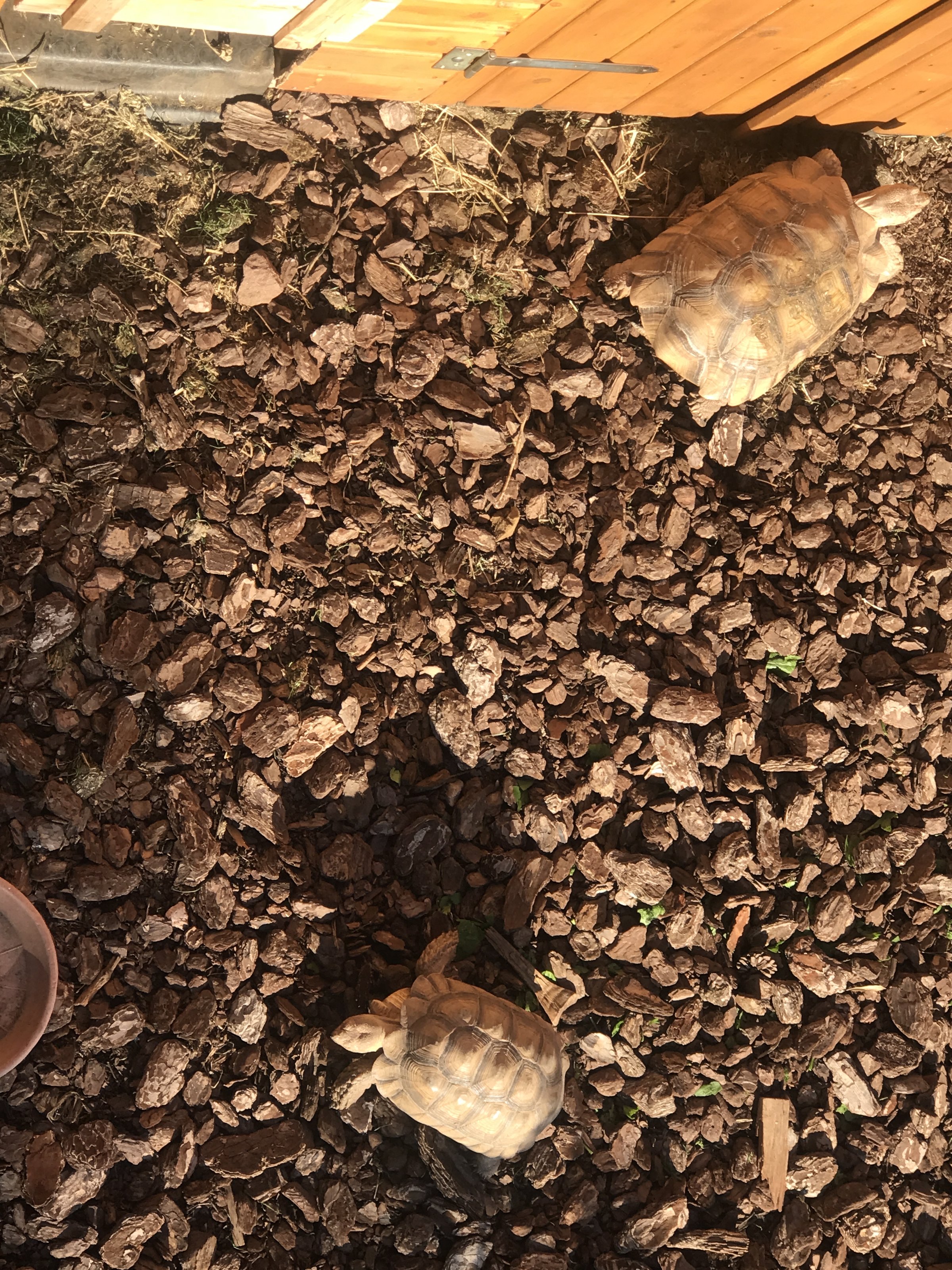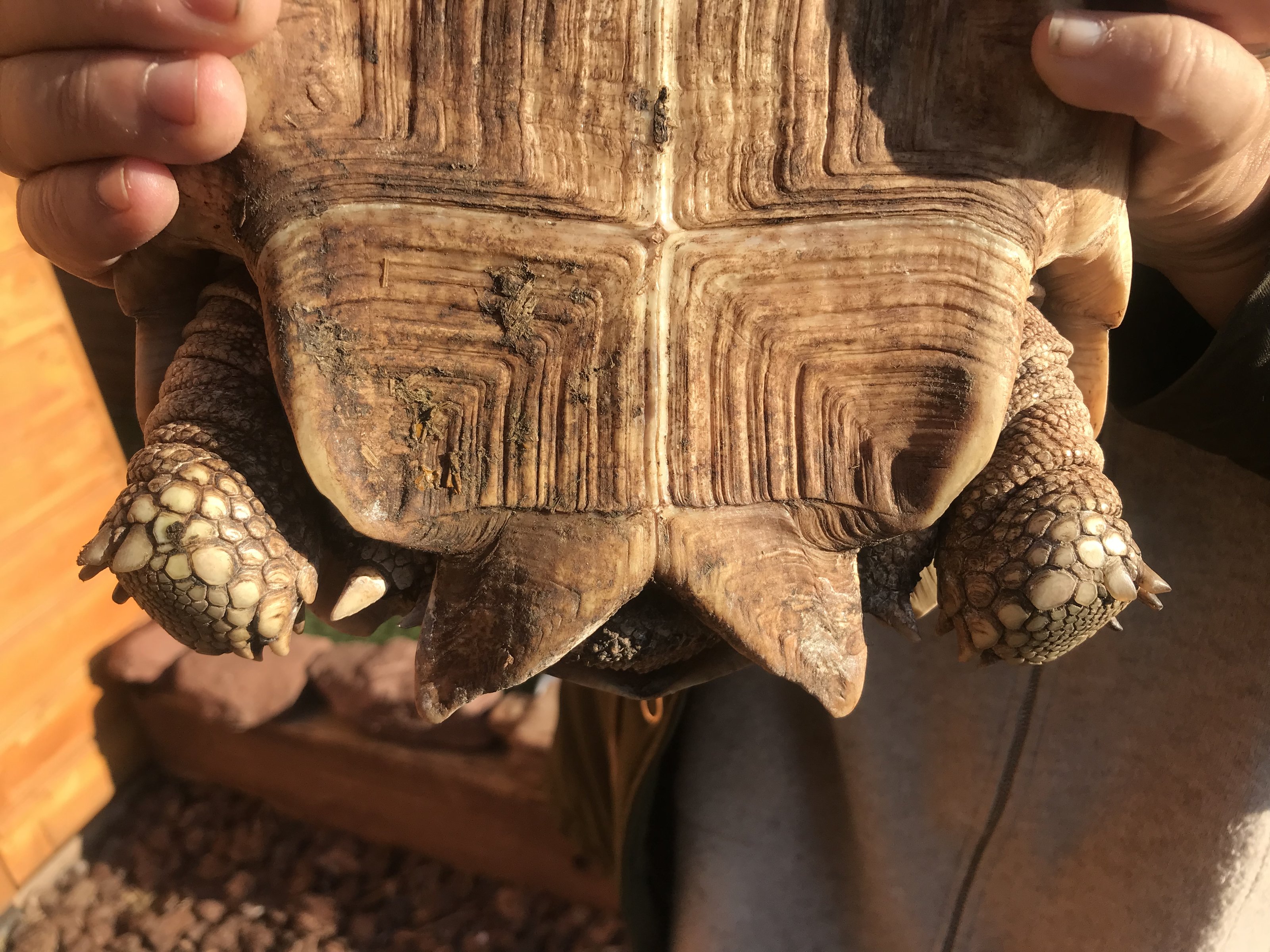Hola, tengo dos sulcatas de 8 años con mucha diferencia de tamaño entre ellas. La de la segunda foto creo que es claramente macho y es la más grande además. La otra podria ser hembra? Que pensais?