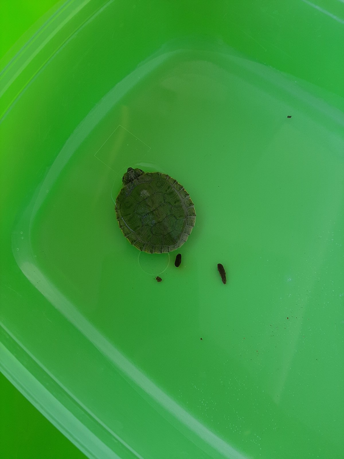 Ayer con la primera salida del confinamiento, en la playa encontré una tortuga galápago de Florida de orejas rojas. Tendrá 2 meses. Mide 5 cm de largo. Es diminuta. Provenía del mar y caminaba tierra adentro. Debe de haber nacido en el río o en la desembocadura, a 1 km de distancia.