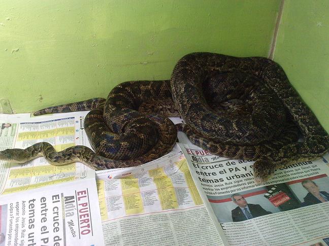 Buenas!! os pongo unas fotos de mis angulifer que hasta hace poco estubieron copulando. la hembra mide 250cm y va por los 6-7kg y el macho bastante menos. Ahora mismo estan mudando las dos en cuanto muden pondre mas fotos.