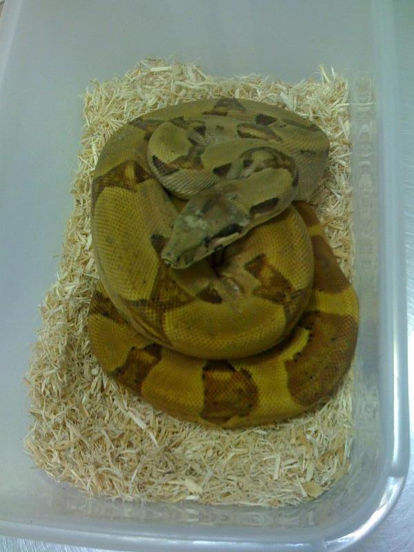 El macho esta ahora mismo en proceso de muda, la hembra ha mudado hace 1 semana y esta cogiendo un color bastante amarillo de fondo. Mide ahora mismo 1 metro.