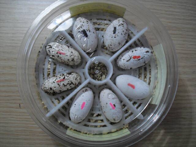 Yo los compre el año pasado a un criador de Uk el los llama GEO's, van muy bien para organizar las puestas y ahorrar espacio en la incubadora.
