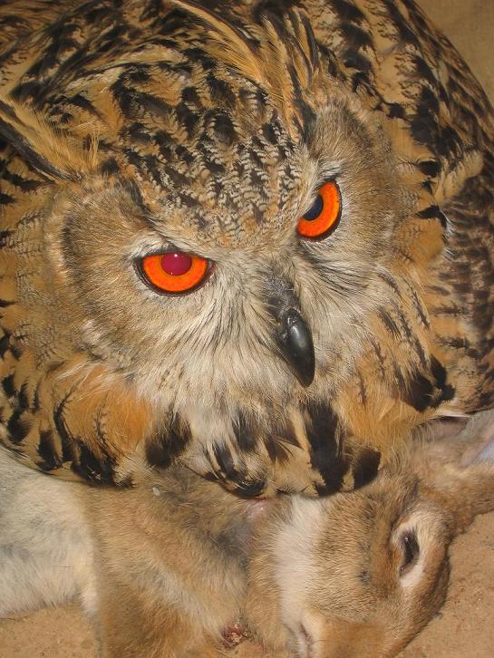 ... Anda que no disfrutaba el pájaro comiendo la cabeza de la liebre ...