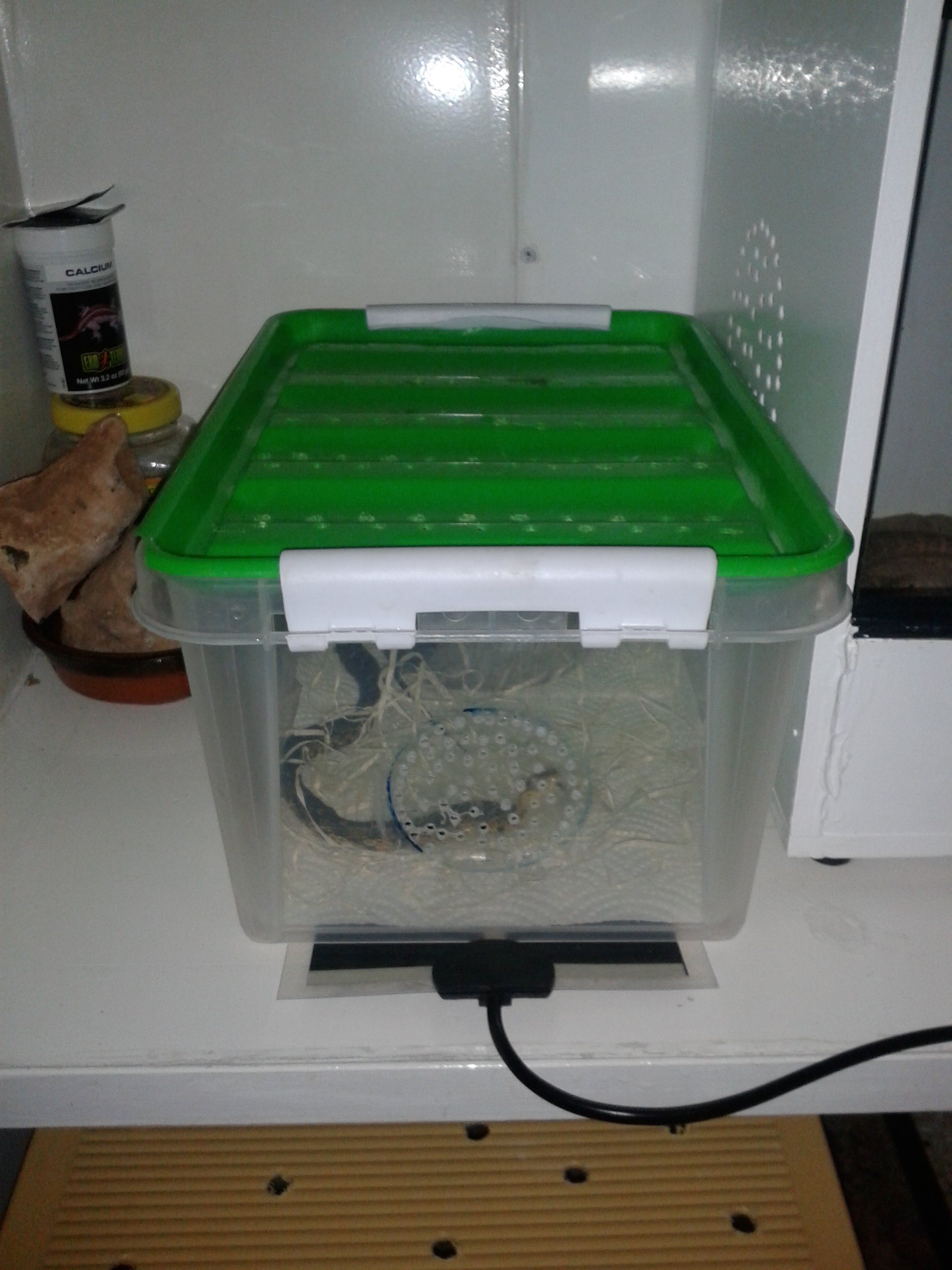 La tengo en el tupper de la foto y con ese cacharro de agua, Creo que es Capturada o de granja, No se si ponía en el anuncio FW pero no me acuerdo muy bien, y no me dio tampoco el documento de cesión, le pedí sus datos para rellenarlo yo.