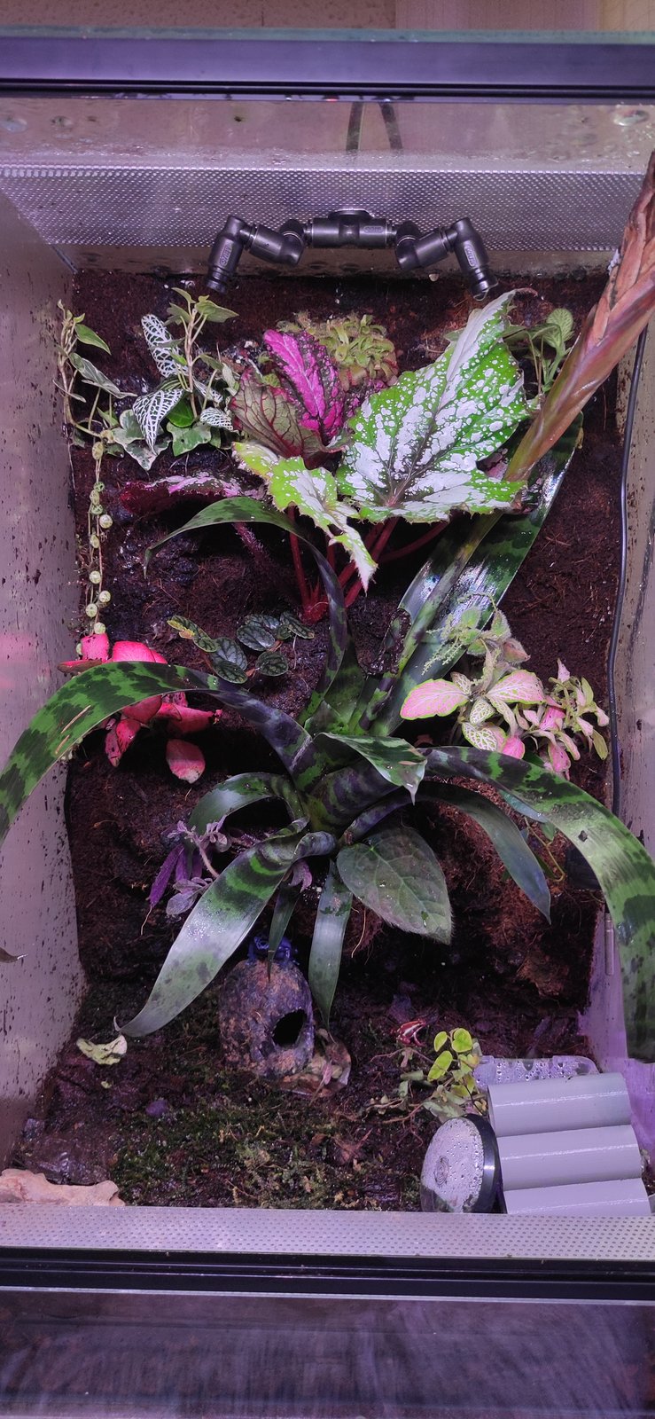 Buenas, estoy pensando en hacer un nuevo proyecto de dendrobates con doble fondo, desagüe, paredes de espuma recubiertas con coco y vasos para plantar, suelo de coco-musgo de java y si lo veo posible una mini cascadita con nebulizador en una esquina que fluya hasta la otra esquina. Todo esto lo he hecho antes en un terrario excepto la cascada pero solo es darle un par de vueltas al invento, así mantengo mas humedad aparte del sistema de lluvia. Ahora viene mi duda: en el mío actual 30x30x50 (largoxanchoxalto) lo he calentado por manta eléctrica ya que lo veía más sencilla y fácil de poner. Pero me he dado cuenta que no llega a calentar bien, entre que el doble fondo hasta el suelo donde pisan las ranas está a 7-8 cm y la altura del terrario la parte de mas arriba se me quedaba a los 19 si es que llegaba y el suelo a 21 aprox (otoño-invierno). Este nuevo no tiene tanta altura pero seguirá comiéndose un trecho de 7cm hasta el suelo (si meto cascada supongo que será un poco más tendría que mirarlo. De ahí en pensar al instalar todo poner un cable calefactor que también pudiera sumergirse. Pero leyendo por aquí he visto que algún compañero decía que podía quemar las plantas debido a la temp que alcanza, rajar el cristal o que es un follón de colocar. Yo lo colocaría entre la espuma y alguna parte por el doble fondo haciendo un recorrido por las paredes y el suelo básicamente, por ello al montarlo de 0 no me es inconveniente alguno ya que es proceso de creación del terrario. He leído algún post parecido pero no aplicándose a un caso como el mío, me gustaría vuestras opiniones ya que tengo miedo de poner manta y que se quede corta de calor (he mirado una de 35W 28x65cm) o de que el cable calefactor se caliente tanto que queme la espuma/mate plantas/raje cristal o lo peor que sobrecaliente a las ranitas, pero si hay alguno que no alcance mas de 30ºC supongo que no pasará nada, no estoy seguro todavía de cual mirar, en cables si que soy novato (he mirado en ali uno de 5m 25W pero ni idea). Os dejo un adjunto de mi terrario actual para que sepáis a que me refiero con la espuma, coco y plantas. (La azureus va a ir en este nuevo terrario está aquí de paso). Agradecería vuestras opiniones