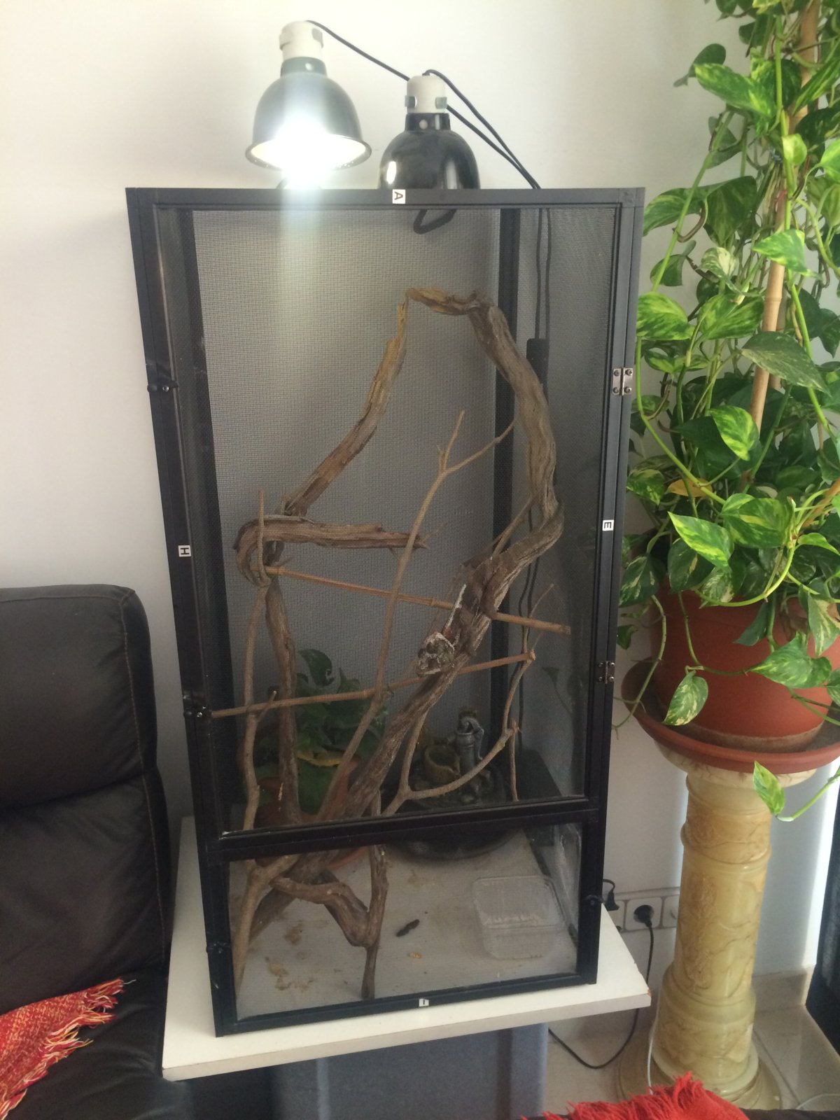 dinos como lomantienes temperatura terrario alimentacion humedad...si comparte terrario, si las bombillas estan dentro del terrario sin malla protectora...