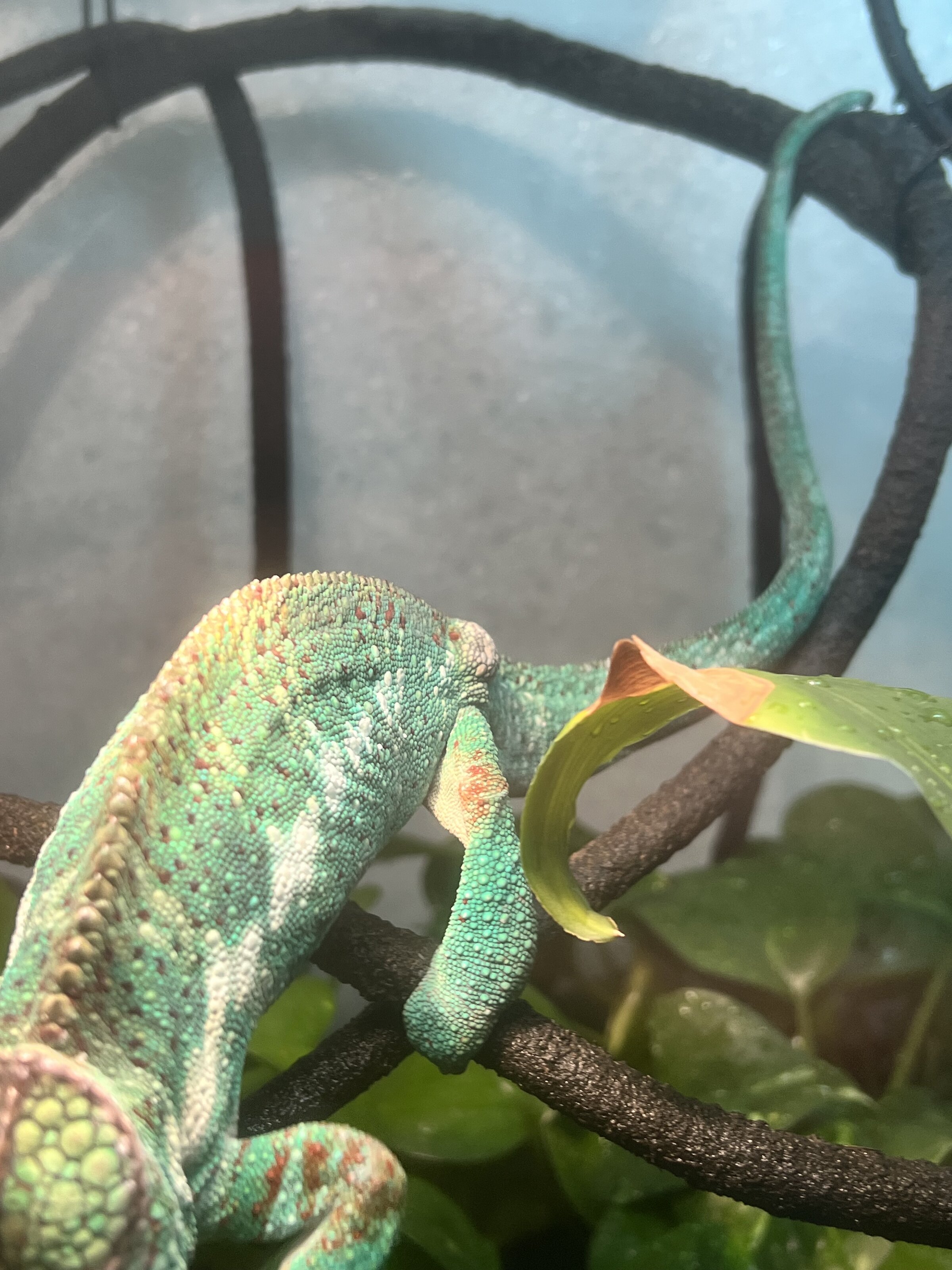 Hola, mi camaleón pantera de 4 años tiene una bola casi que por la cola (adjunto fotos) está bien de peso, come bien, toma agua, la temperatura de su terrario es correcta y no noto ningún cambio de actitud en el, solo quiero sacarme de dudas ya que la bola lleva más de 2 meses y no noto nada malo