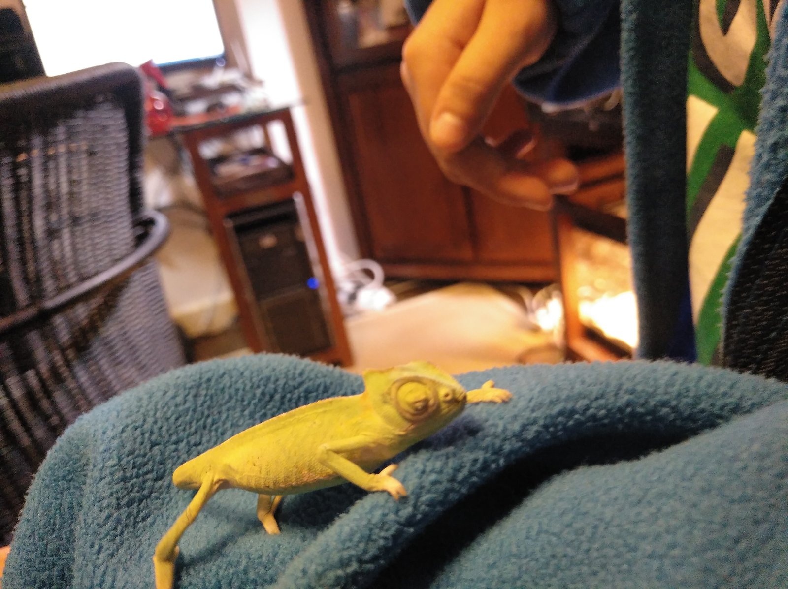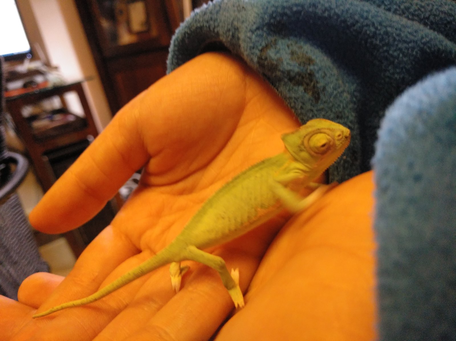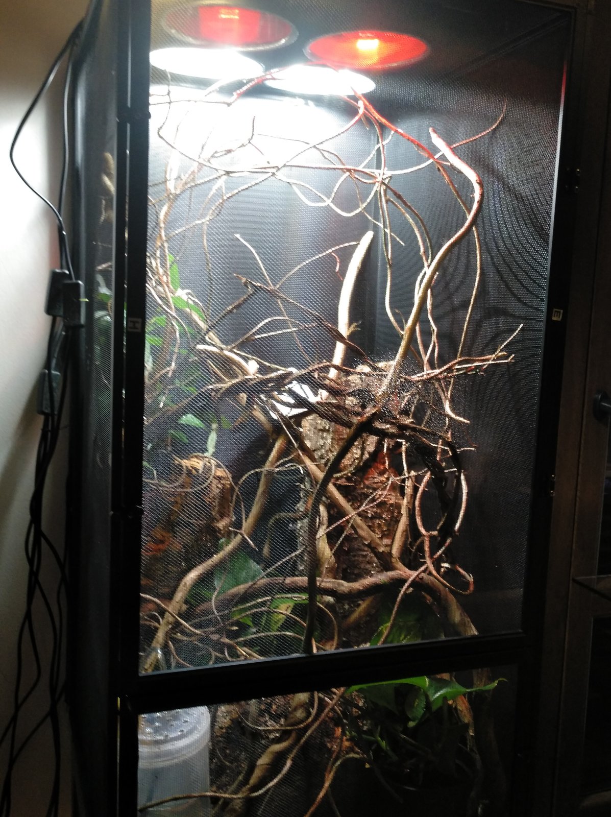 Saludos a todos , soy nuevo en el foro. Uno de mis camaleones de unos 3 meses de edad, hace 15 días se cayó del terrario y acabó en el suelo. Se le hinchó el ojo y no lo tiene casi nunca abierto y se rasca muy a menudo contra las ramas. Además, apenas come creo que por culpa de el ojo y cada vez lo veo más flaco. Le he echado gotas de Olopatadine que leí en el foro que a un compañero le había funcionado, pero el mio no mejoró nada. Os adjunto unas imágenes de como esta el ojo y otra del terrario. Muchas gracias por la ayuda.