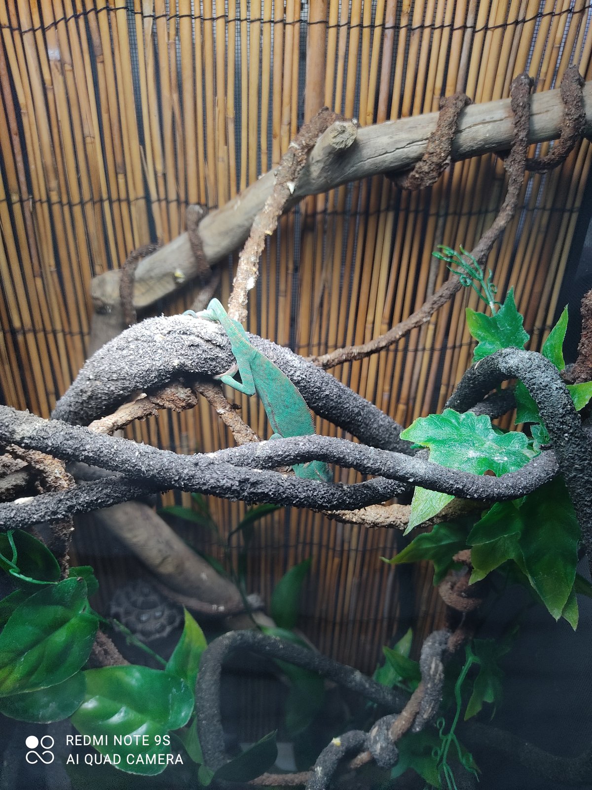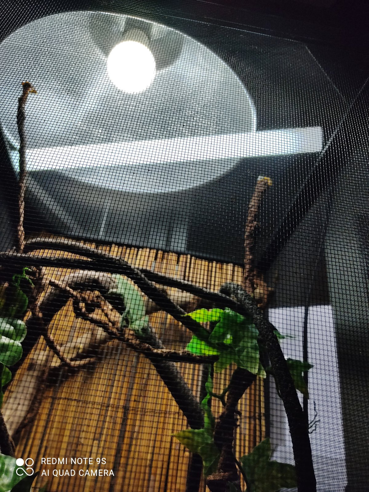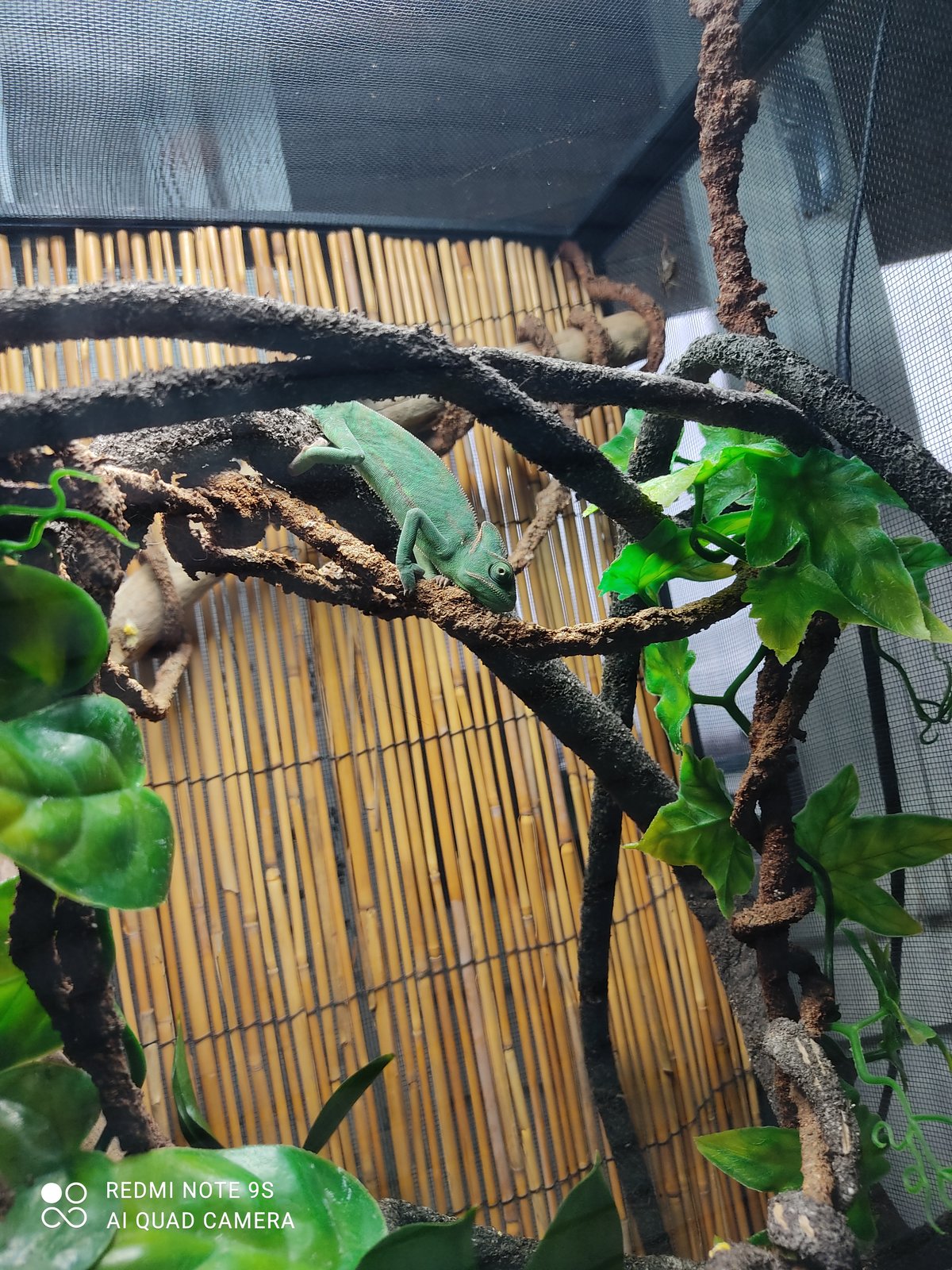 Aupai,hola,tengo un camaleón de unos 3....4 meses,terrareo de malla con las luces necesarias,puesto que me lo dio un amigo q criaba y tal,luego os hago fotos,en teoría ha estado bien hasta hace unos días, alimentación a base de grillos pequeños,está últimas semanas tenebrosos porque habían crecido los grillos y es más grande q su cabeza,también mudo bien,se le quedaron restos en el ojo,y al mes o más se lo logré quitar, porqué se comporta así??es decir poco activo, témpera 18 diurna en casa,pero tiene las luces, gracias de antemano y disculpar la molestia.