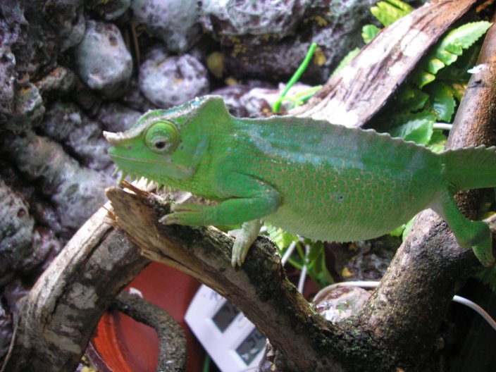 Bueno, los montium y los jacksoniis aguantan bastante calor, más del que se cree y más del que suelen poner en los libros. Lo más importante es una buena diferencia de temperatura entre el dia y la noche. Lo que no toleran son temperaturas constantes o con poca bajada de temperatura nocturna, ya que esto es necesario para que su metabolismo interprete que ha llegado la hora de dormir.