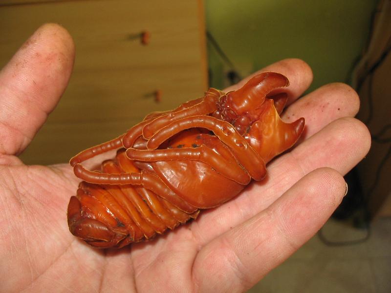 El unico problema q me ha surgido, el el ultimo momento, ha sido q la larva no hizo una capsula lo suficientemente grade y no ha podido estirar los cuernos del todo >