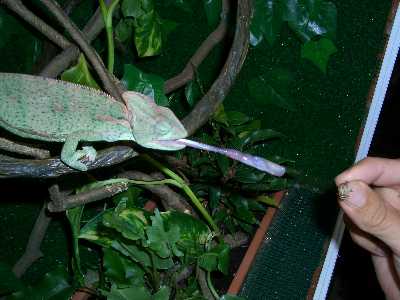 Chamaeleo calyptratus: Comiendo