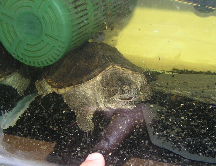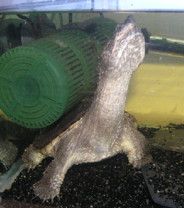 Esta es la chelidra serpentina de mi novio "natereri", es malísima, siempre está al acecho, a todo lo que se mueve, hasta a los dedos!! nunca nos ha llegado a morder pero... intentarlo lo intenta. Tiene 1 año y medio, y yo diría que es hembra por su fisonomía, por lo de la cloaca y eso... la verdad es que es un animal bonito de observar. A ver que os parece la CHELY.