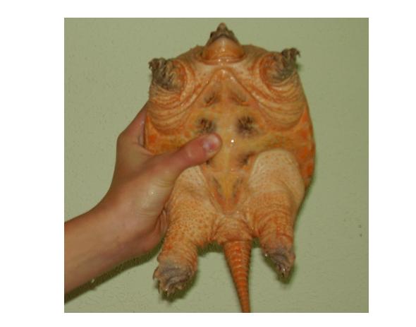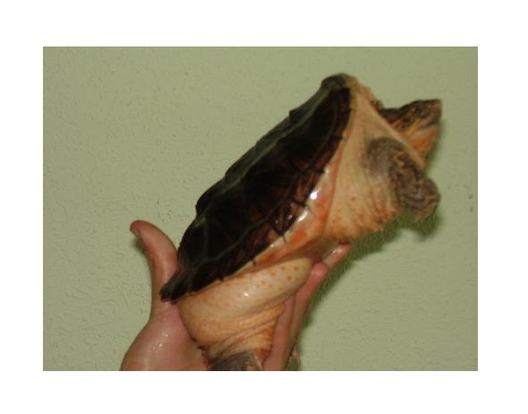 Una fotografia del la tortuga nadando o en tierra firme con el cuello y las extremidades estiradas ayudaria a verla de otra forma.