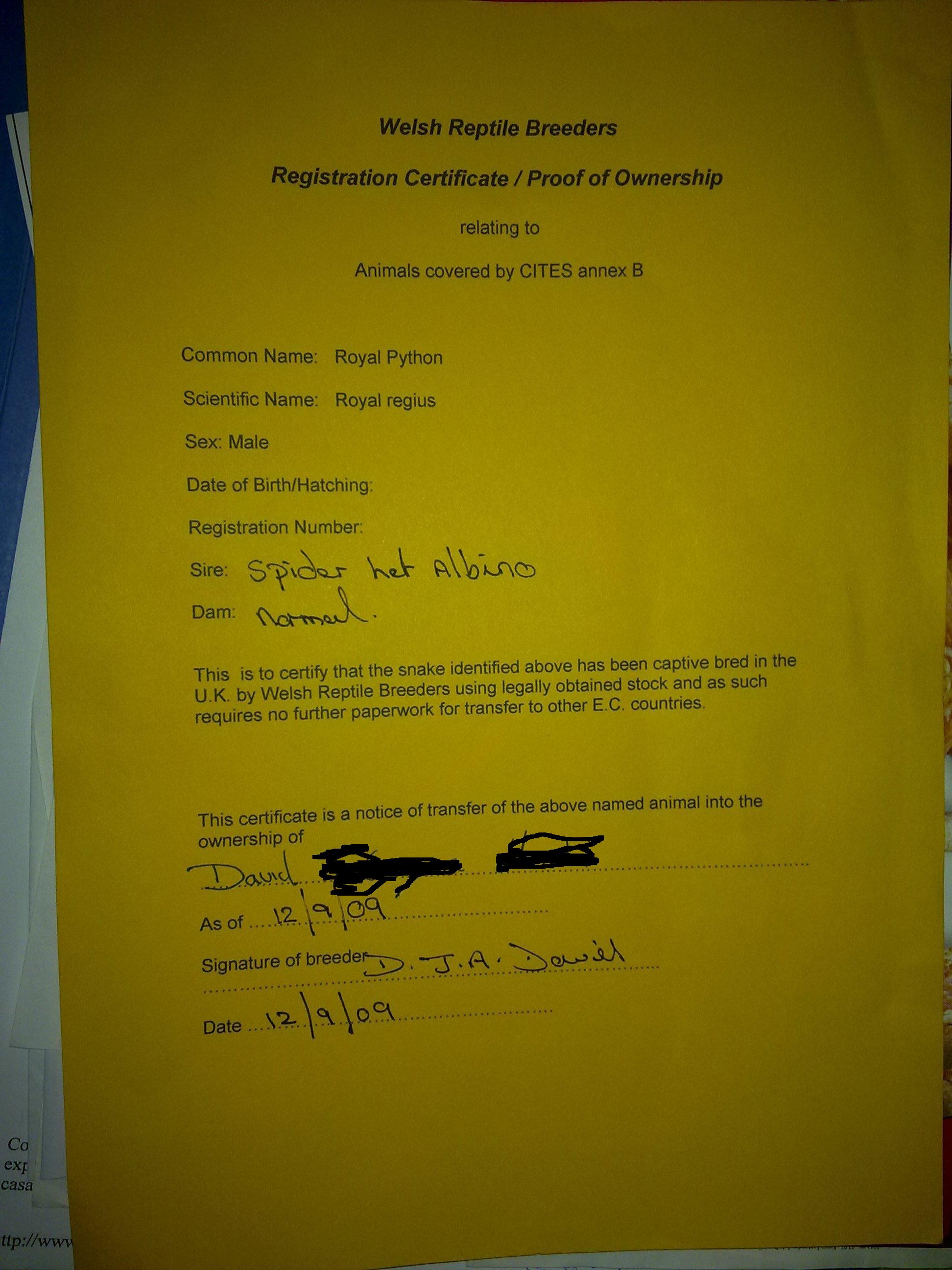 Buenas, haber si me podeis explicar un poco, yo compre una regius traida de fuera, me la enviaron y con ella un documento de cese en el que pone el numero de CITES, nombre del vendedor, etc... pero no tengo el documento de Cites solo viene escrito en el documento de cesion, entonces mi pregunta es si es necesario que pida el duplicado del documento de CITES o con que tenga solamente en numero en caso de que me quisieran tocar los ******* las autoridades ya me valdria para identificarla??