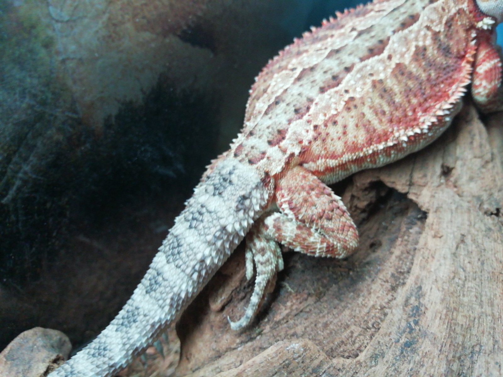 Hola a todos, desde hace algunas semanas mi pogona tiene la colo de color diferente que el cuerpo, cuando termino de hacer la última muda, parece que se ha quedado grisácea y no se pone naranja, es normal?? Tendría que llevarla al veterinario? Por lo demás está normal, come bien, se mueve lo normal y no parece pasarle nada. Subo foto a ver si alguien me puede decir algo gracias