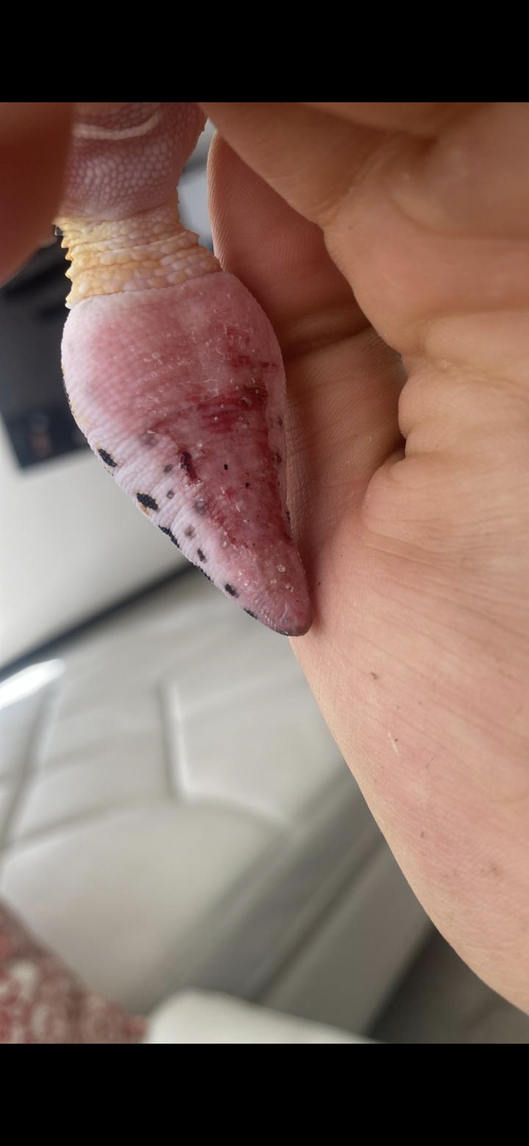 Hace 2 días vi a mi gecko y resulta que tenía un dedo necrosiado y la cola por la parte de debajo roja y seca, estaba bien hace un tiempo pero mudo de piel y tiene un poco de retención de muda en los dedos y le estado dando baños y le salió eso en el dedo y no se que se puede hacer o que le paso y si el dedo se va a regenerar o algo así y lo de la cola que se puede hacer para que vuelva a la normalidad