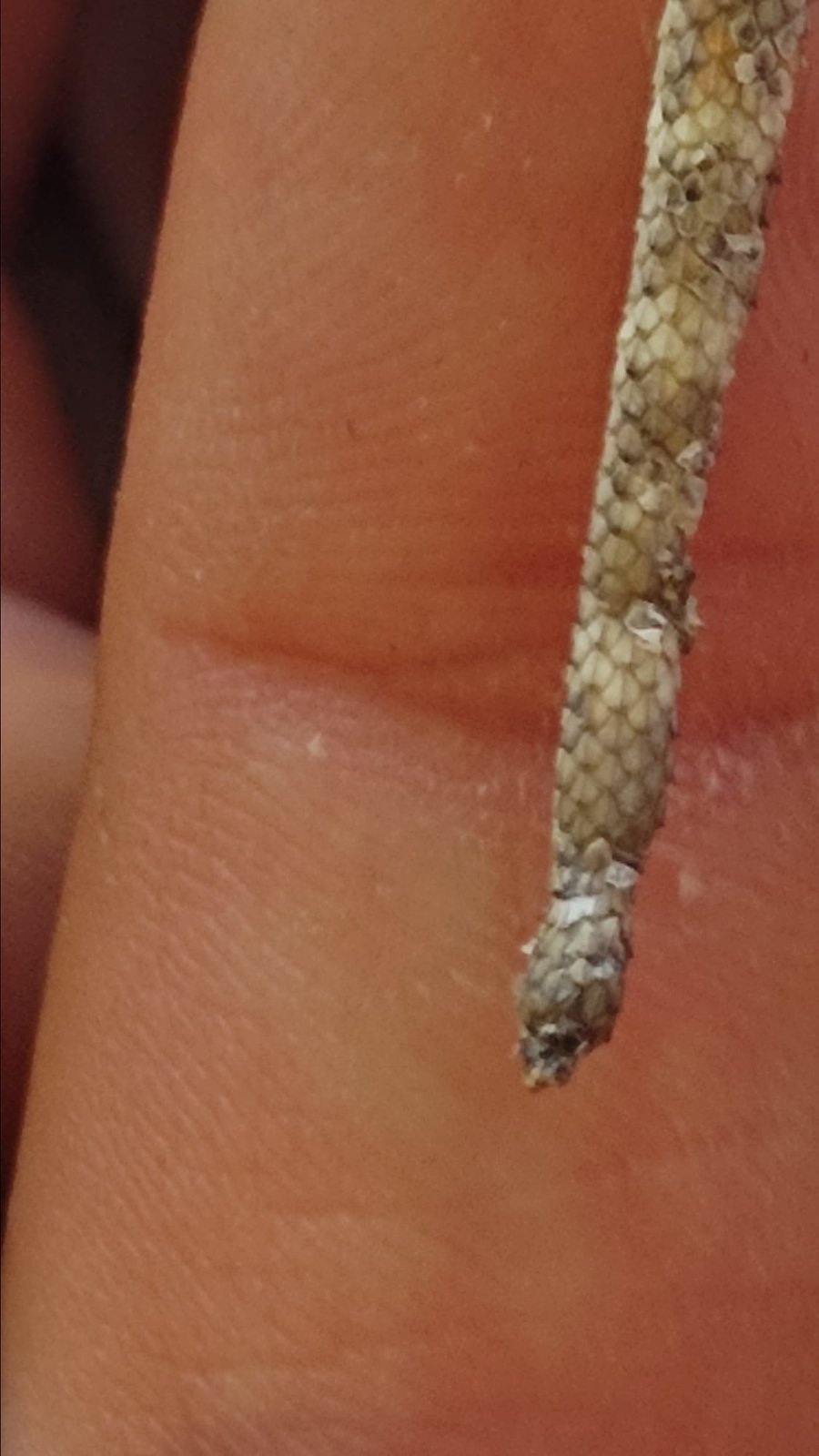 Tengo una pogona baby llamada Ryu de unos 1-2 meses desde hace unos días, acaba de mudar entera y le falta por mudar la cola, el problema reside en que la punta de la cola está color grisácea oscura y bastante rígida, dudo que sea necrosis o retención de muda... Pregunto si pensáis o sabéis si es normal, los parámetros del terrario están en orden, y la tengo bien alimentada, la baño una o dos veces a la semana, si podéis guiarme o aconsejarme... Os lo agradecería.