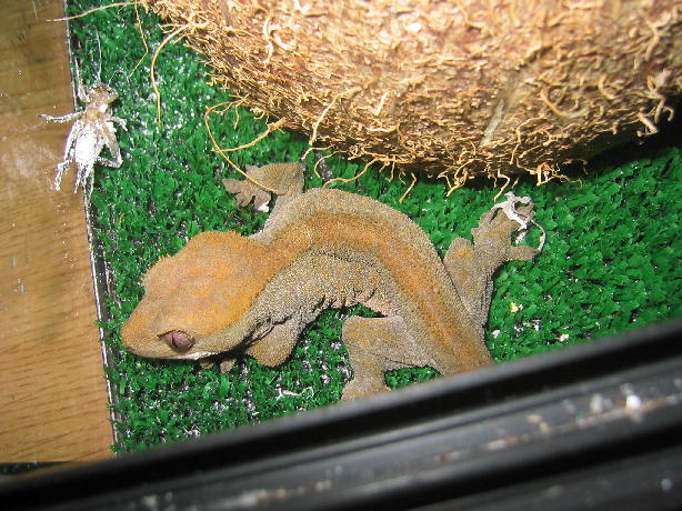 Mas fotos despues de comerse un grillo. Hoy acaba de mudar.