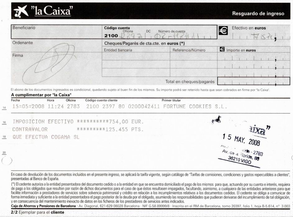 Y aquí tenéis el justificante bancario de pago de la misma.