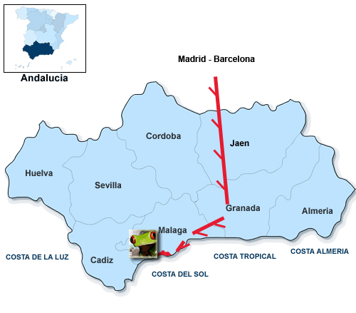 Llegar AL FROG DAY ANDALUCIA desde Málaga (Sevilla-Barcelona-Madrid) es muy fácil, hay dos accesos básicos.