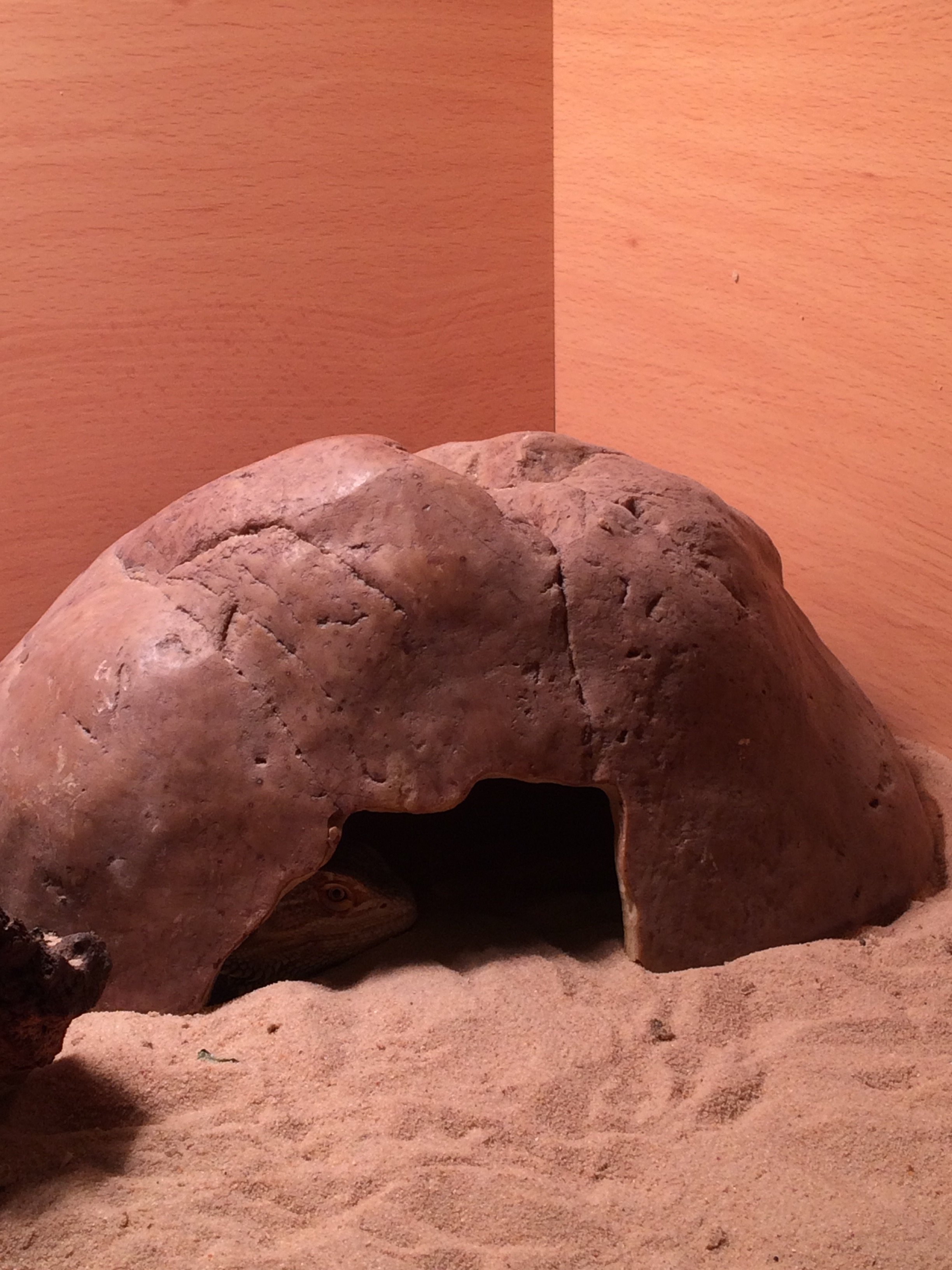 Hola buenas, tengo una pogona de 1 año y siempre a sido muy activa, pero desde hace 2 semanas mas o menos esta bastante rara, comer come bien, lo que le eche se lo come, pero no defeca bien, cada mucho tiempo y muy mal, y lo mas raro es que siempre esta metida en una cueva que tiene, la saco la pongo por ahi, esta 1h como mucho y se vuelve a meter, el tiempo de comer no mas, la temperatura esta bien tiene agua aseo le pongo vitaminas a la comida cada x tiempo... Todo como siempre lo he hecho en este casi año q la tengo pero ahora esta asi y nose si tienen de vez em cuando este tipo de comportamientos o si puede estar enferma, lo que mas me preocupa es q no cague bien y que este siempre em la cueva, pues siempre a sido muy activa
