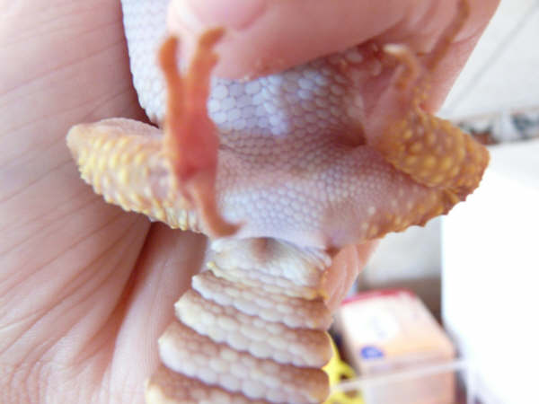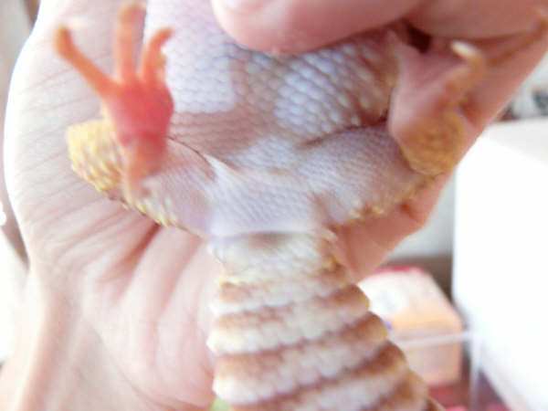 En primer lugar la confirmación del sexo de nuestro nuevo compañero (que en mi opinión es compañera), abajo tenéis un par de fotos. Por mi parte ni aprecio la V de lo poros, ni tampoco los bultillos de los hemipenes; pero por aquí entendéis bastante más así que me fío de lo que me digáis