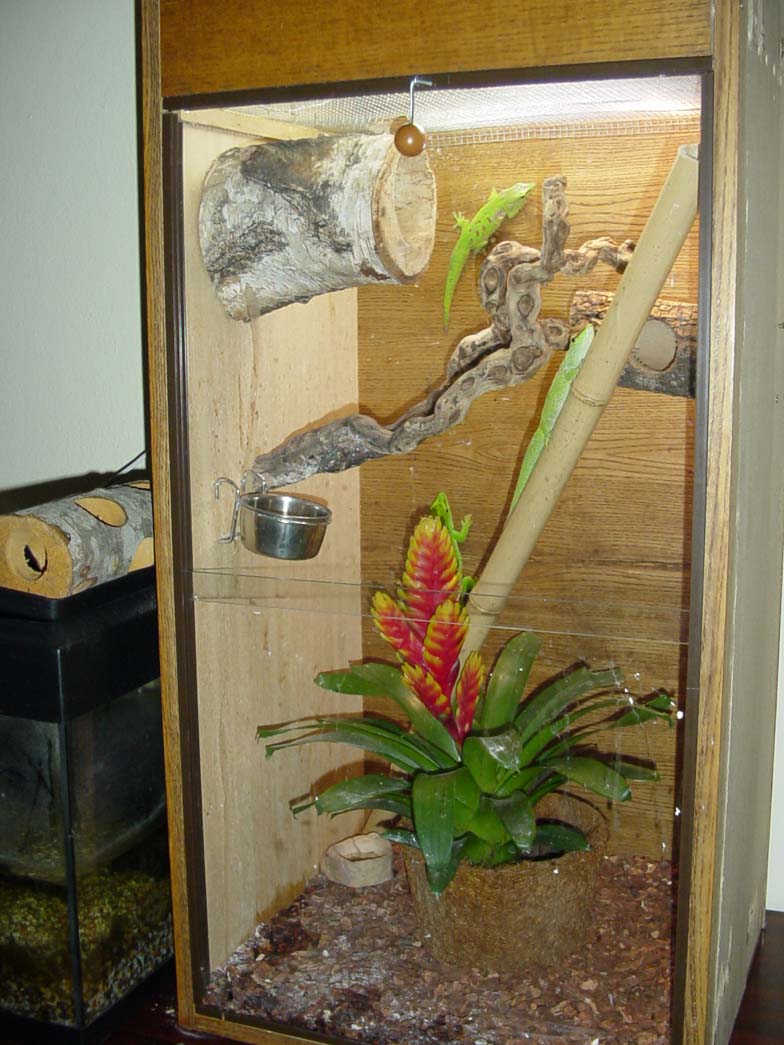 También tiene otro tronco-refugio y una enredadera artificial, que tipo de planta natural le podría poner para que mantenga bien la humedad? tengo un photo (creo que se llama) bastante grande y podría hacer un esqueje para pasarlo al terrario, estaría bien este?