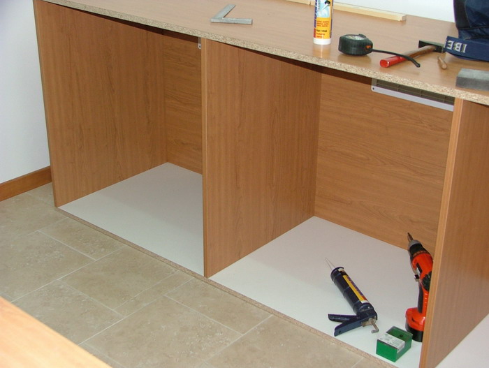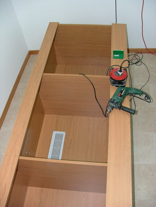 En la foto se aprecian los tableros cortados, en aglomerado melaminado acabado cerezo de 19 mm, canteado en PVC color cerezo. Los fondos de los terrarios los realizo en tablero idéntico pero de 10 mm de grosor, puesto que no soportan las tensiones estructurales de las otras paredes y así se evita aumentar el peso del conjunto. En estos tableros, el color blanco siempre es más económico que los acabados en colores de maderas, así que los suelos de los terrarios los encargo en color blanco, puesto que en ningún caso se van a ver, ya que irán pintados con pintura aislante de látex.