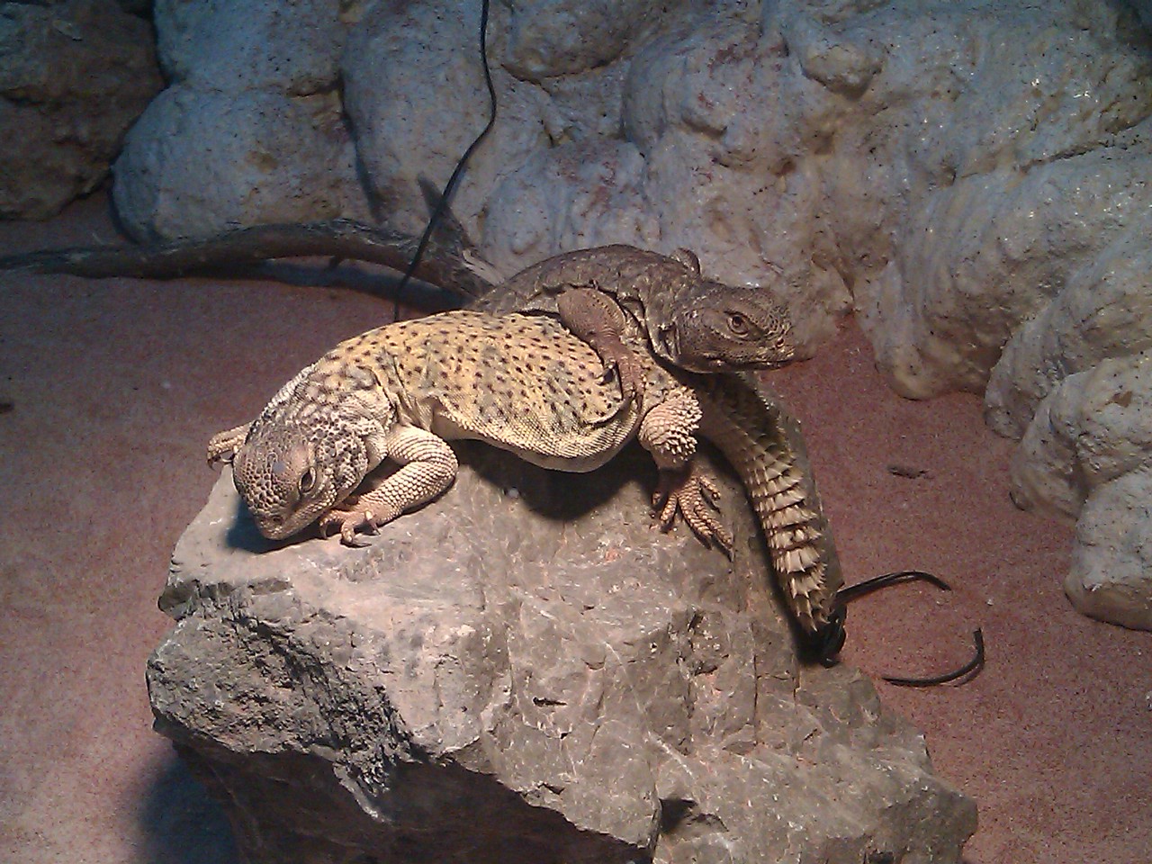 aqui las fotos de los cambios y de mis uromastyx dispar la hembra ya ha comido pero el macho no y me tiene muy preocupado se pegan durmiendo todo el dia yo tengo q ponerlos bajo el foco y el macho esta super parado no se si volver a ponerlos en el otro terrario otra vez alguna idea ha y le doy de comer de todo:menestra germinados garbanzos y lentejas rucula canonigos endivias,etc,etc,ayuda por favor. :confused: :confused: