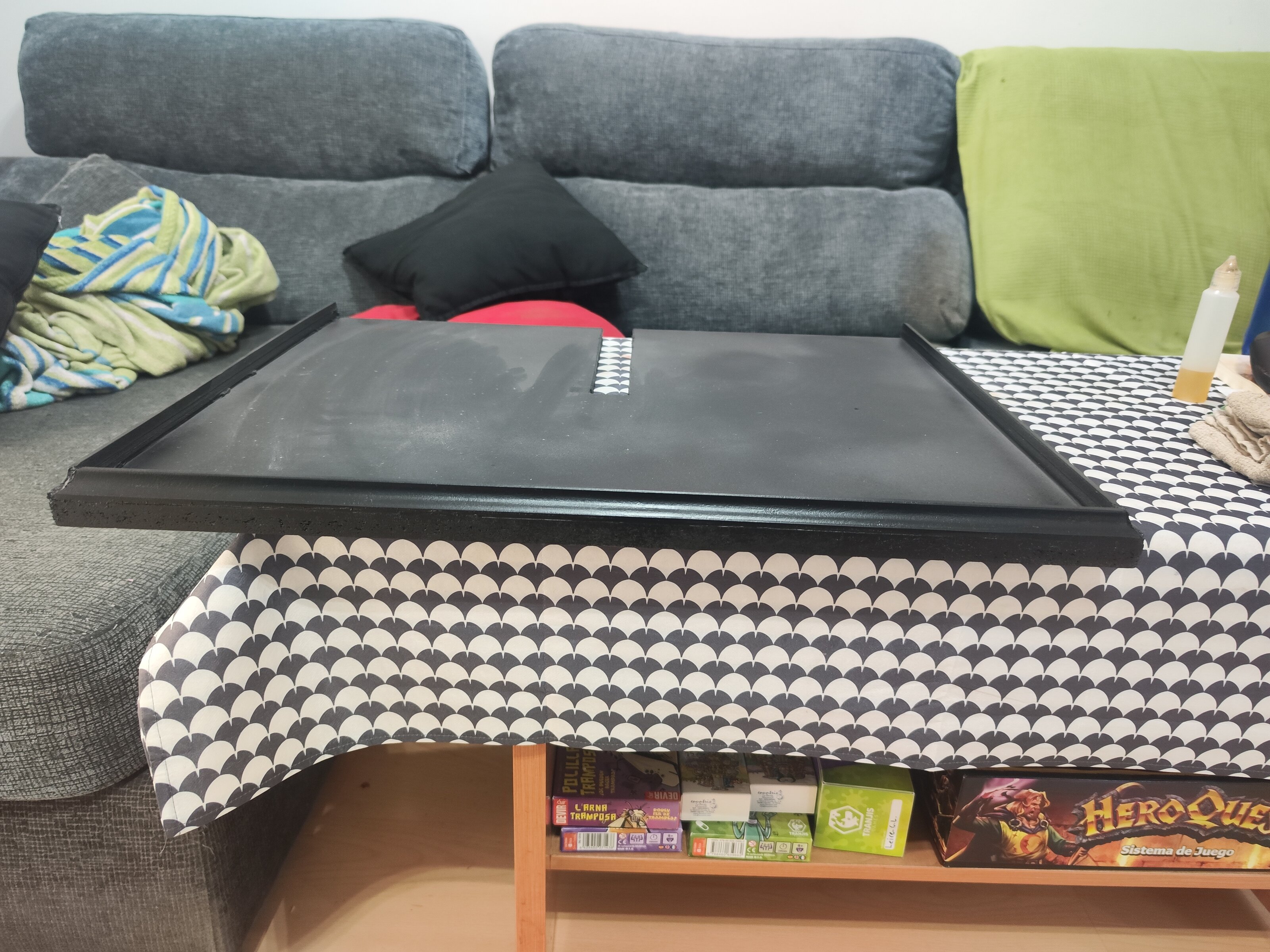 Aquí no hay gran ciencia, madera, pintura negra y unas molduras para que quede más acorde con el terrario.