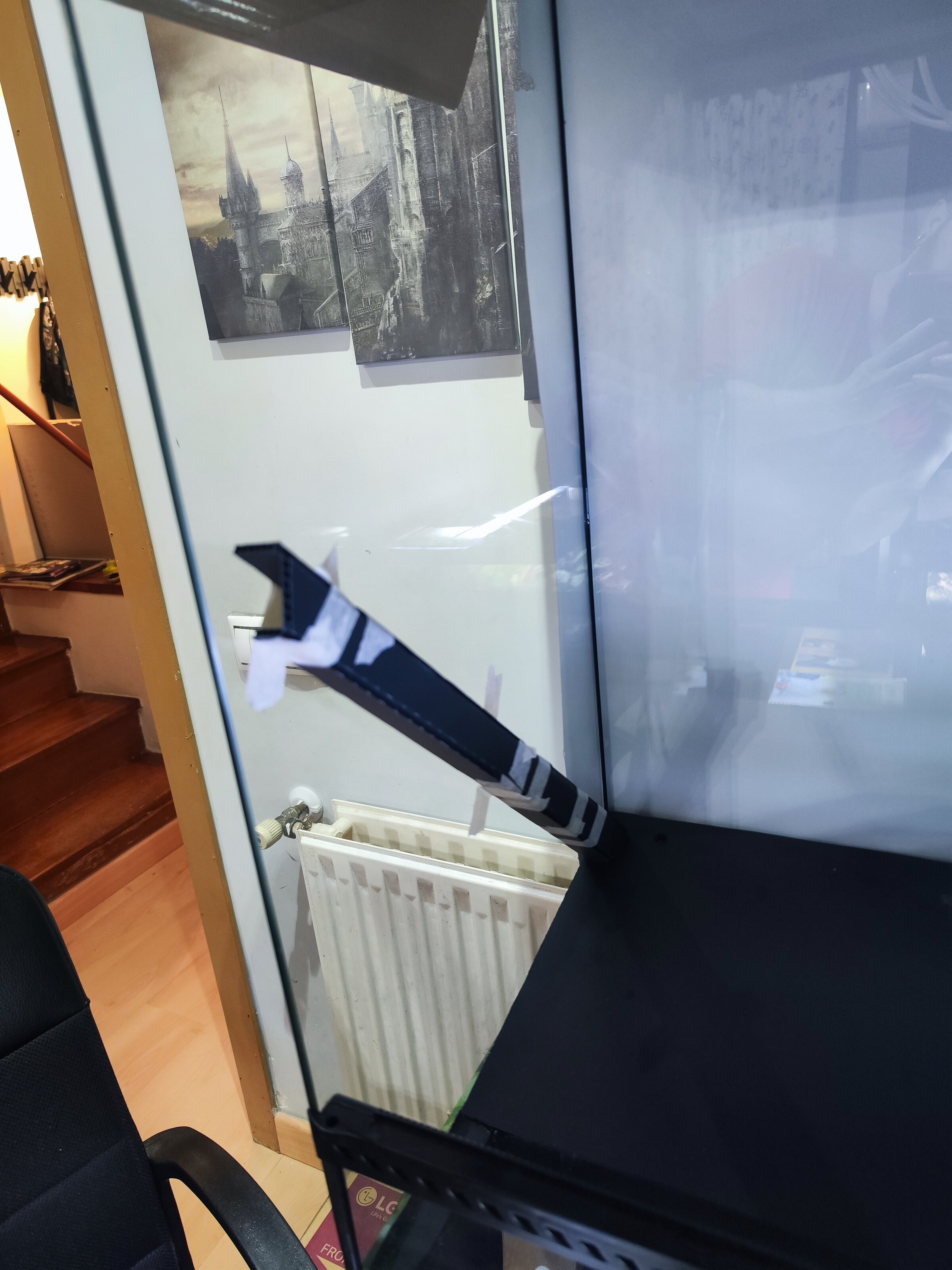 Lo primero ha sido crear un soporte-peana ya que tras hacer un taladro al cristal inferior para desagüe obviamente este choca contra la superficie donde se apoye el terrario.
