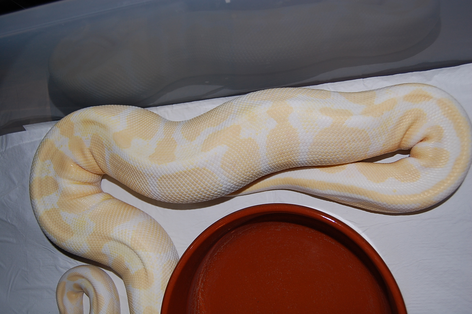 Por otra parte , ayer me ovulo la hembra albina , al principio de la temporada solo quiso copular con el macho albino , pero las tres ultimas copulas fueron con el spider albino .... Veremos que sale .