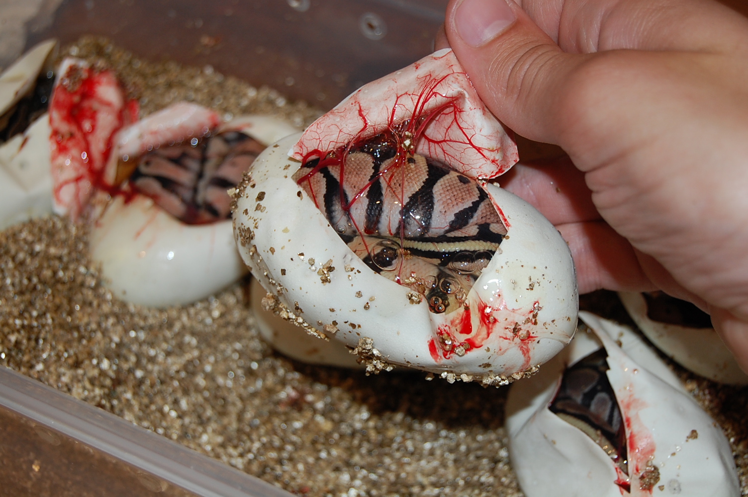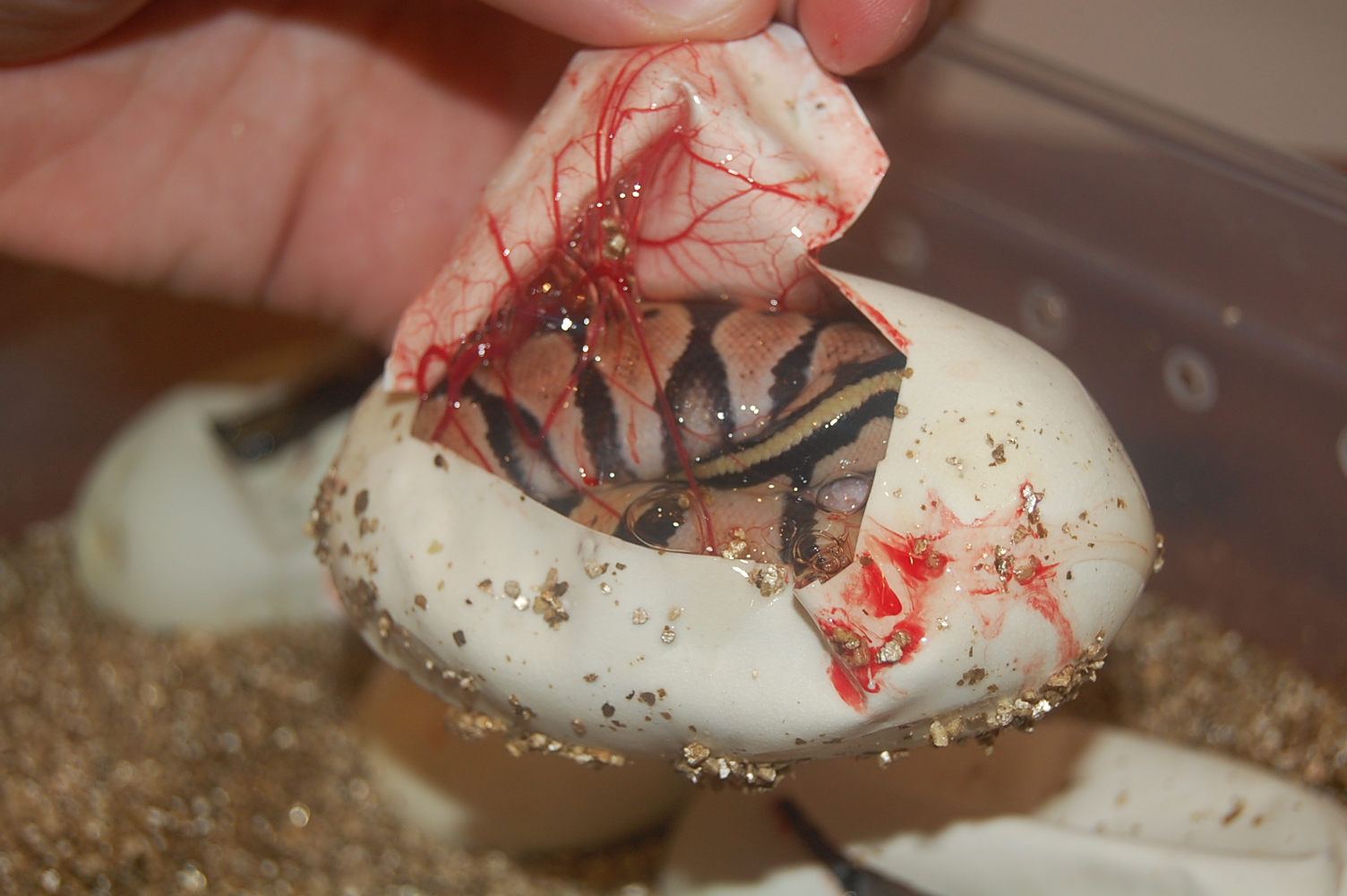 Hola , pues a los 57 dias de incubacion , ya e hecho las ventanas a la primera puesta de pastel het ghost x nomianl 7 , este año e tenido mejor suerte con la genetica comparado con el año pasado jeje, de 6 huevos han sido 3 pasteles y 3 nominales .