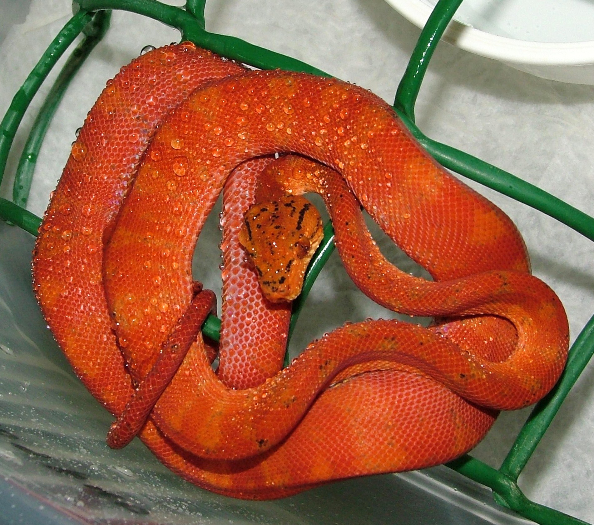 Este machote Tiger rojo también ha copulado repetidamente con la hembra holandesa del ´05, la cual estoy convencido que llevará adelante una gestación productiva, y en ese parto deposito básicamente mis esperanzas de ver nacer en mis terrarios los primeros Tigers europeos, ya que hasta ahora tan sólo han sido criados en USA, y este macho es el único Tiger de color que ha cruzado el charco hasta ahora.