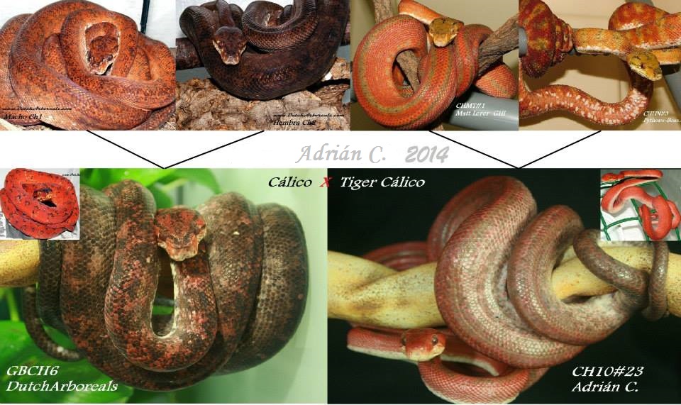 Comienzo presentándolos; el macho es un Red Tiger Cálico producido por el gran amigo Alejandro en 2010, para el que le pueda interesar diré que es el primer ejemplar de esta línea que conozco a nivel mundial, luego no hay antecedentes de su oferta de descendencia.