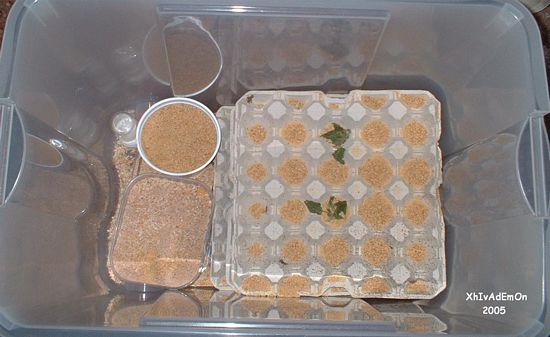 y de comer que les das? Les doy una mezcla ke hago yo con (los ingredientes pueden variar) pienso de pollos, pienso de conejos, salvado de trigo, pan rallado, pienso de perros, levadura de cerveza y cualquier cosa que se vaya gastando y que sirva (galletas,pan,harina...etc). A parte, les pongo un bloque de calcio para ke muerdan si quieren.
