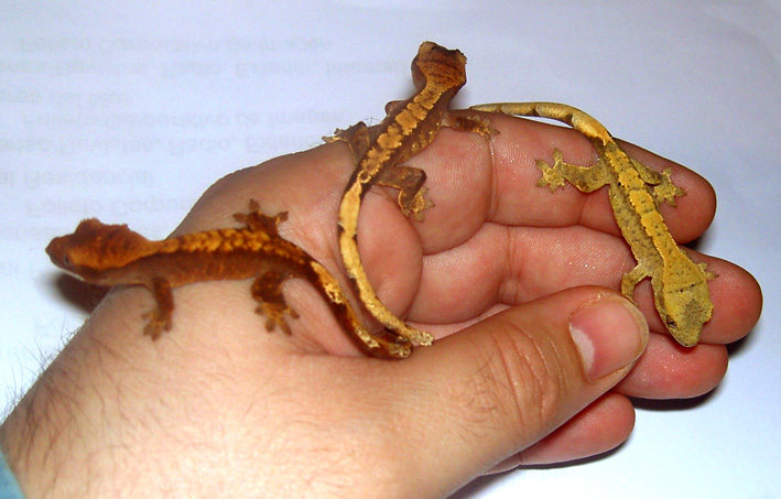 Nacieron con dos días de diferencia las tres, la cuarta se escapó y la he encontrado muerta esta mañana en el suelo deshidratada 12 días después.... que pena... en fin aquí están estas pequeñajas con 15 días de vida(incubadas para hembra todas). Saludos. ;)